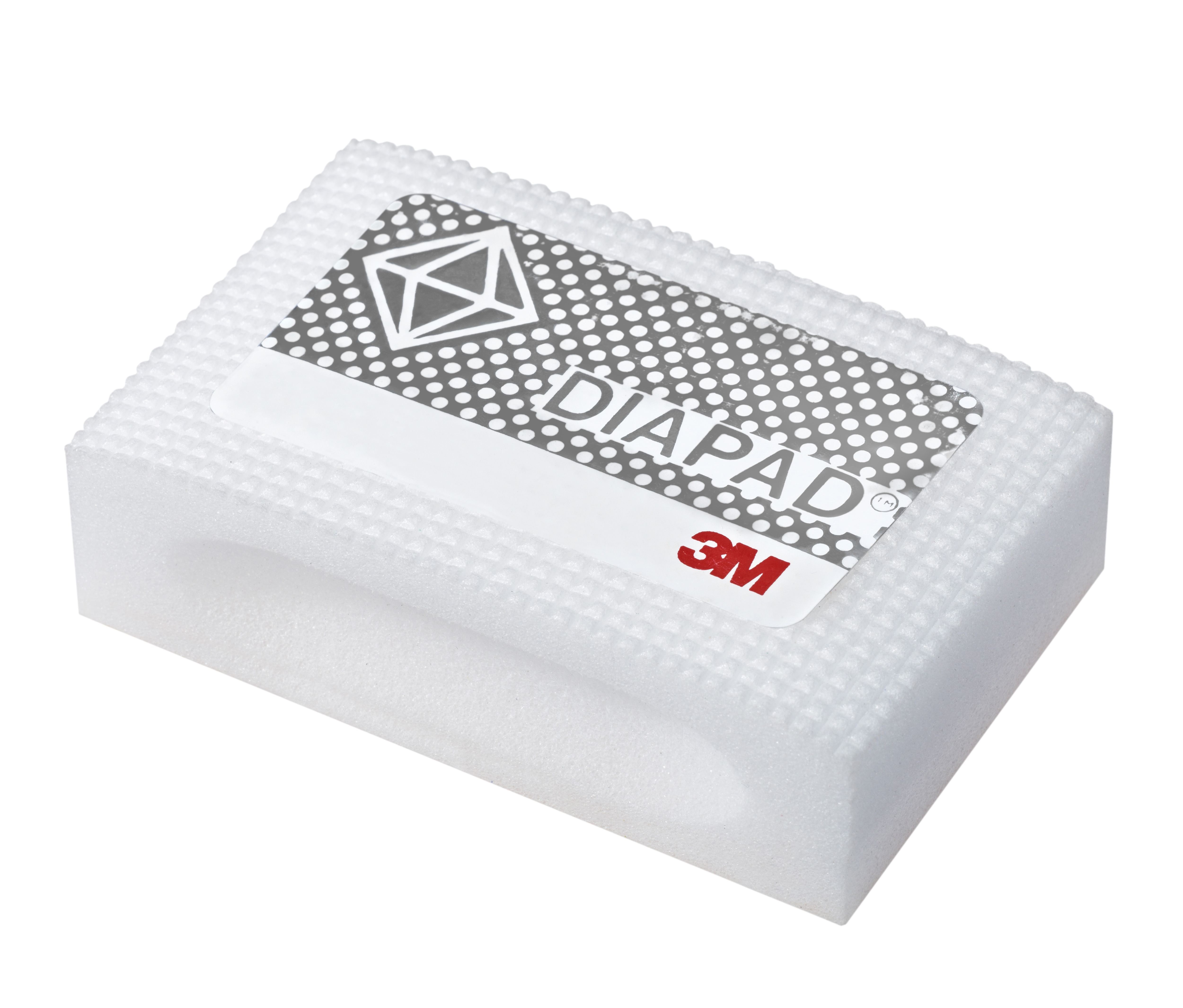 Comfortable Hand-Held Design 3M™ Flexible Diamond Hand Lap 6200J was ergonomically designed to enhance operator comfort. The contoured foam backing assists with grip, so an even level of pressure may be applied over the surface area. Additionally, because Diamond Hand Lap 6200J is hand-held it can easily get into those stubborn, hard-to-reach areas.