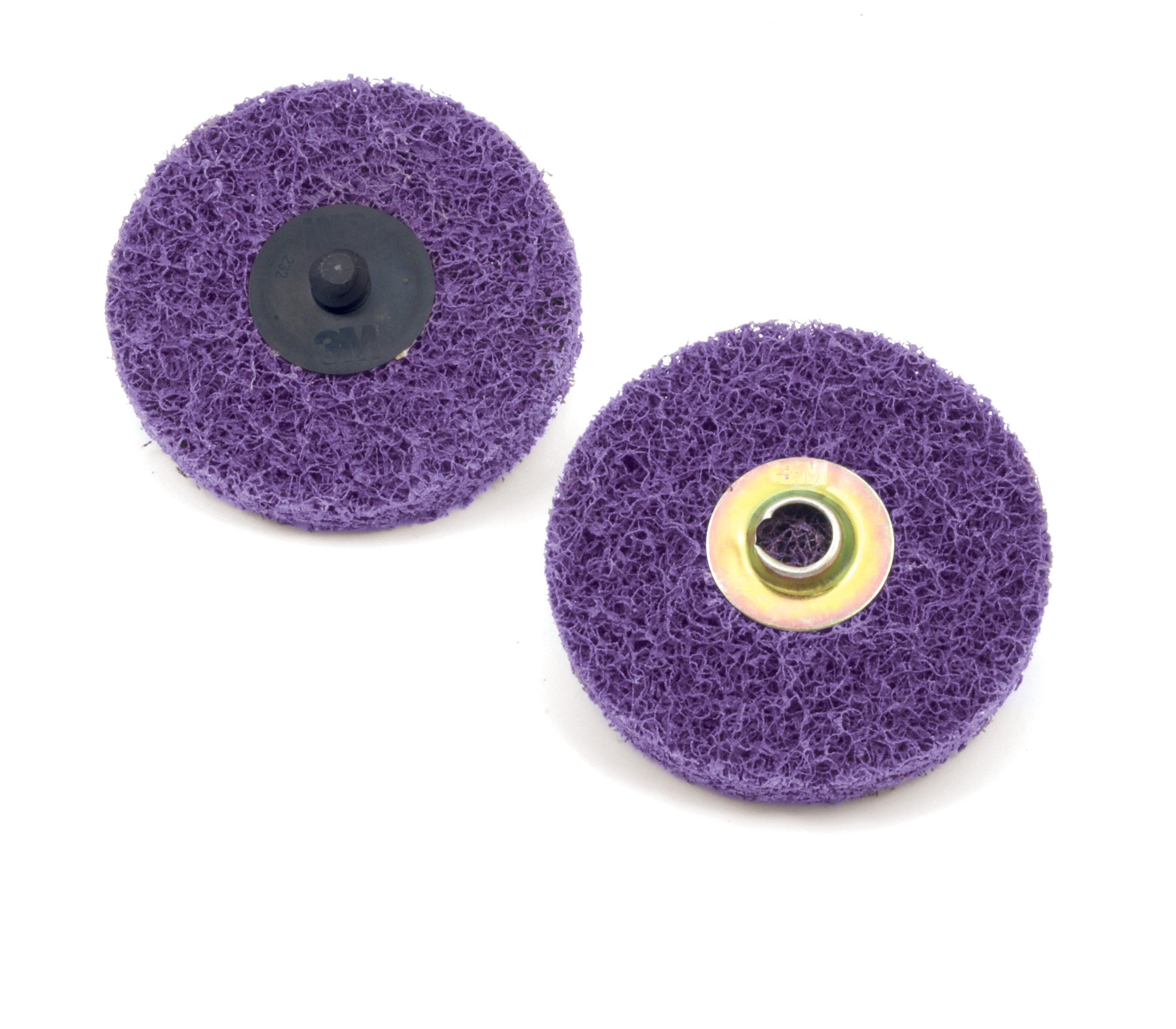 For added productivity, 3M™ Roloc™ products offer easy changeouts between steps on portable tools. 3M™ Roloc™ TR quick change discs are smaller discs that have a plastic threaded button or screw designed to easily and quickly screw onto a 3M™ Roloc™ TR Disc Pad (sold separately) so that operators can conveniently change discs with a simple twist-off, twist-on motion. 3M Roloc discs are also available with a TSM metal button. The 3M Roloc system provides a secure attachment even for heavy-duty applications, and the variety of available 3M Roloc discs allows swapping from one application to the next in seconds.