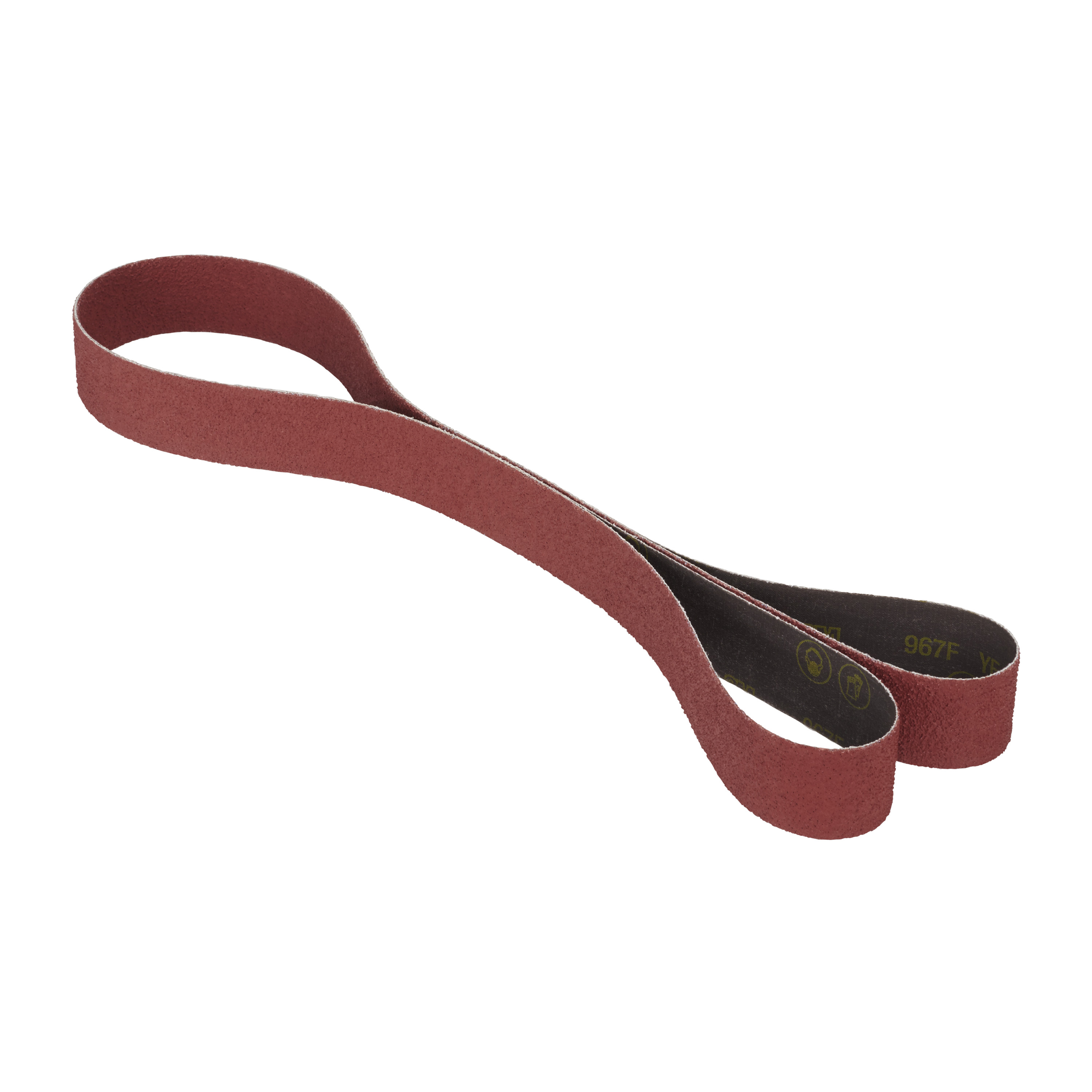 The 3M™ Cubitron II™ Polyester Cloth Belt 967F common applications are descaling, gate removal, high pressure grinding, intermediate finishing, parting line removal, and shaping. It is ideally suited for stripping chrome from old parts as they are being rebuilt