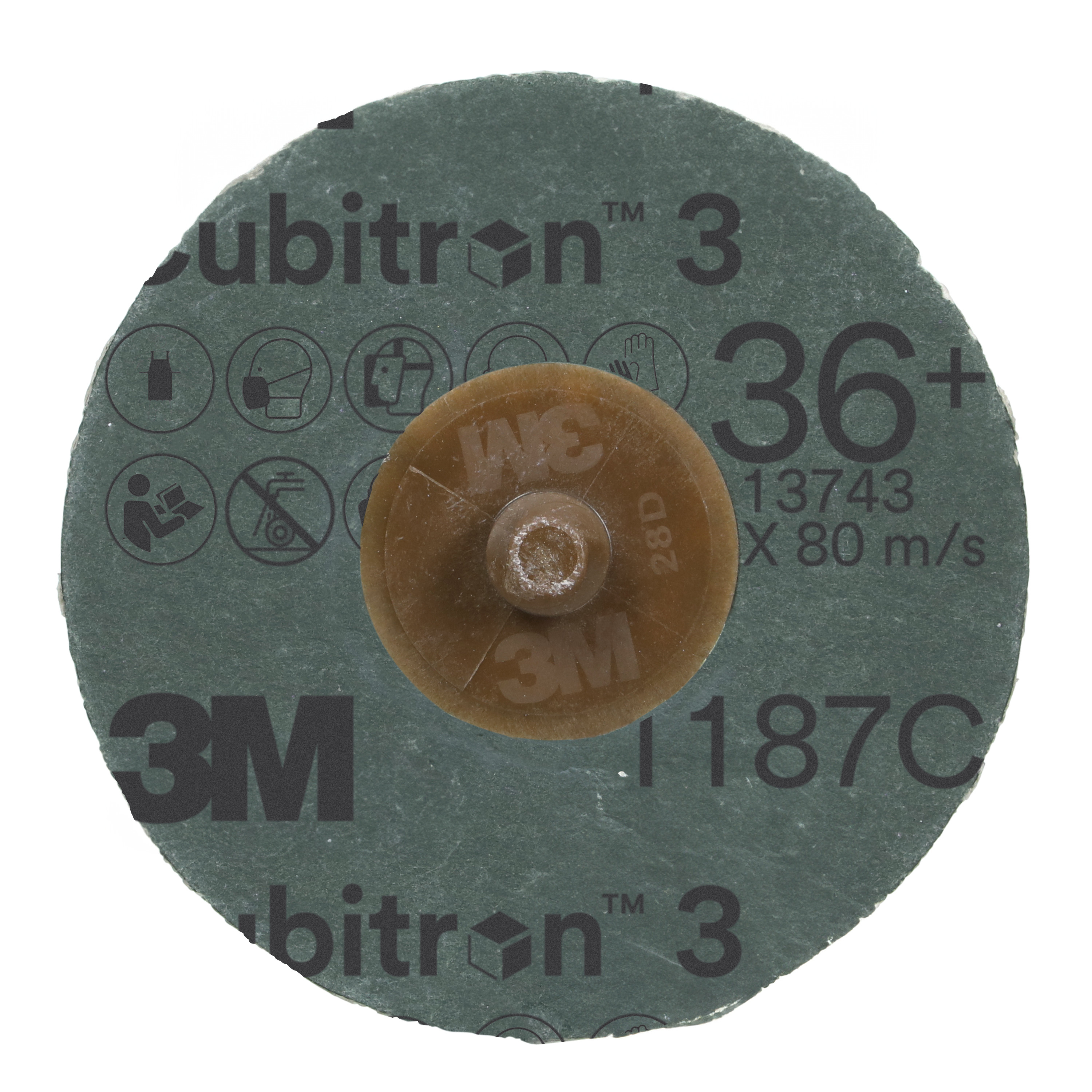 3M™ Cubitron™ 3 Roloc™ Fibre Disc 1187C, 36+, TR, Purple, 2 in, Die R200P, 50/Carton, 200 ea/Case