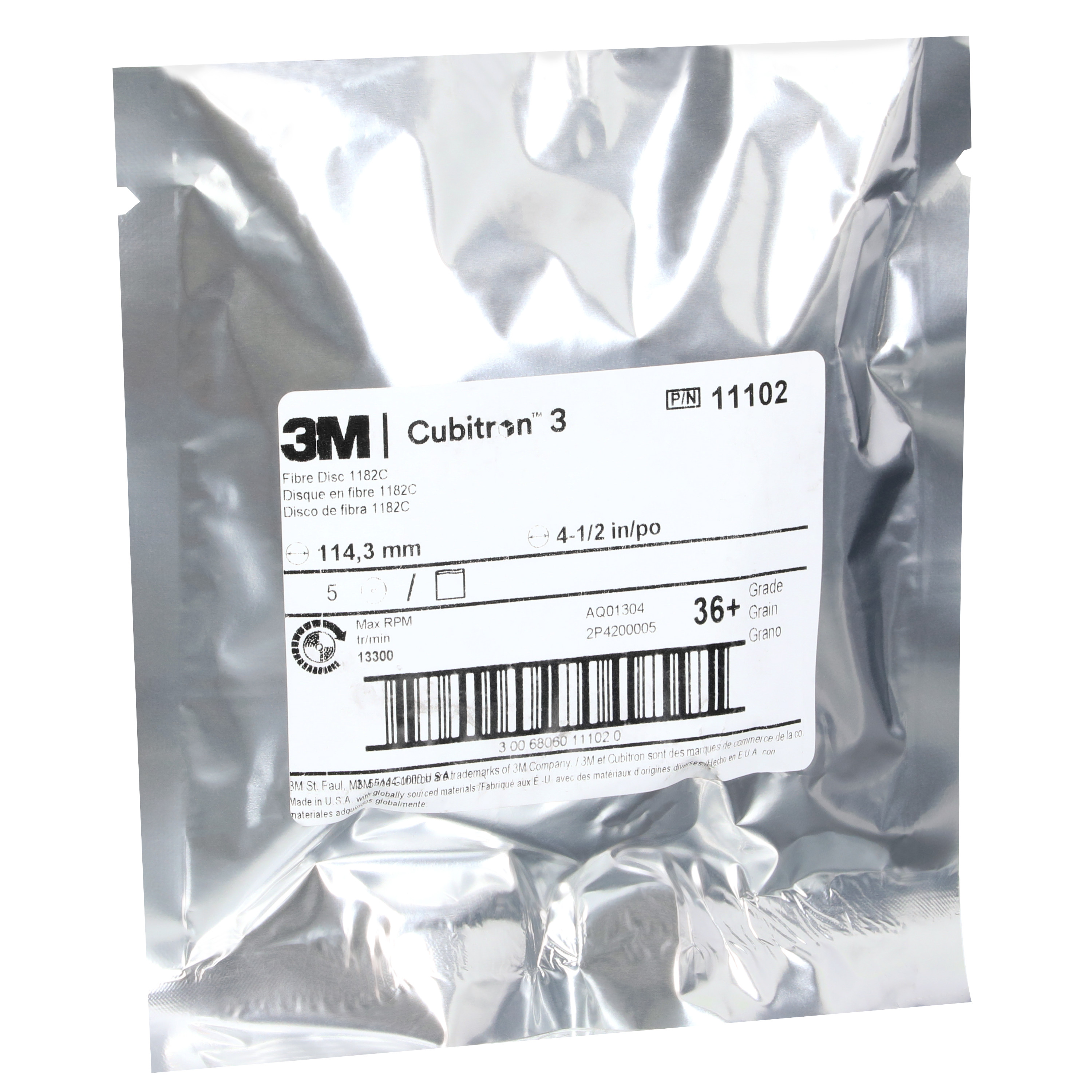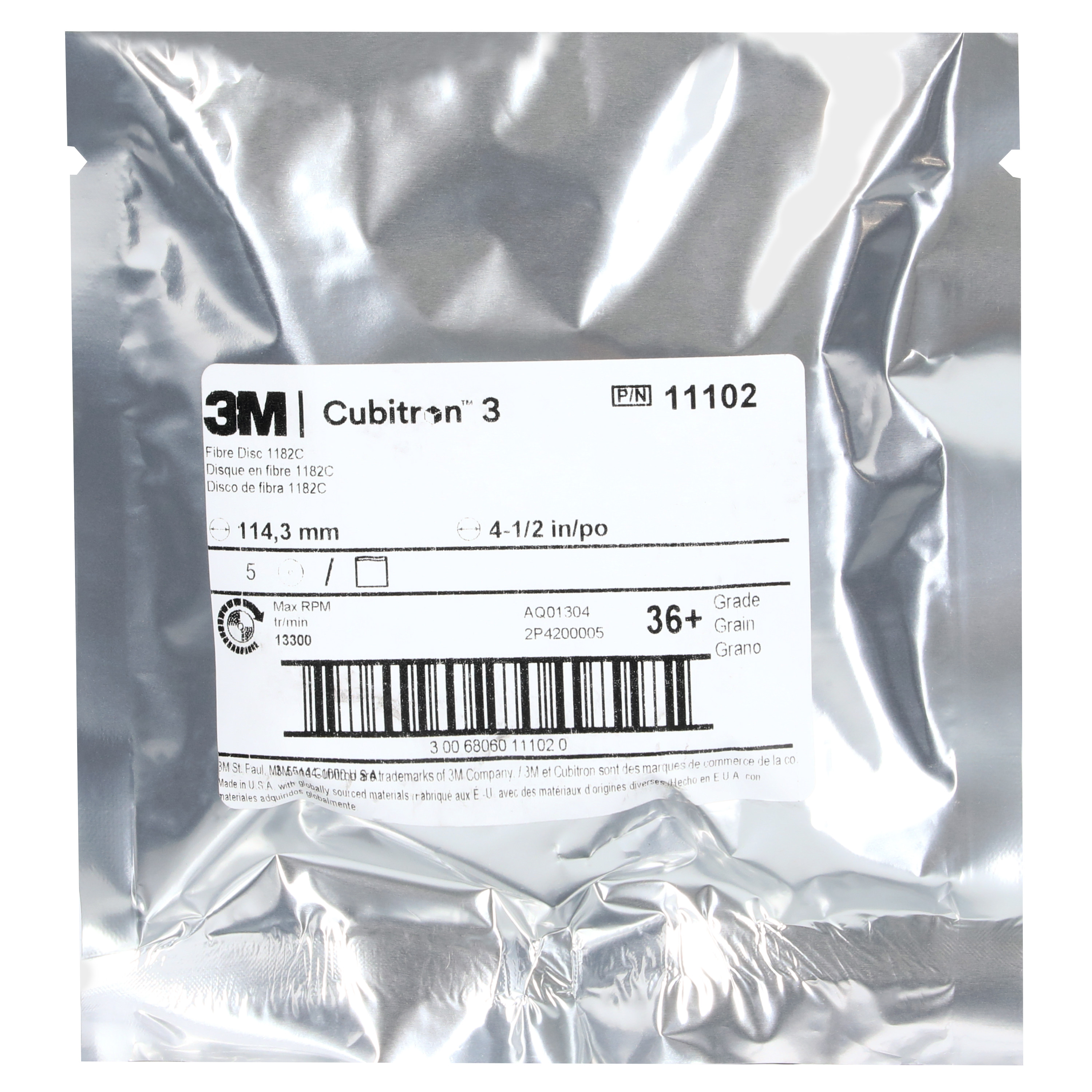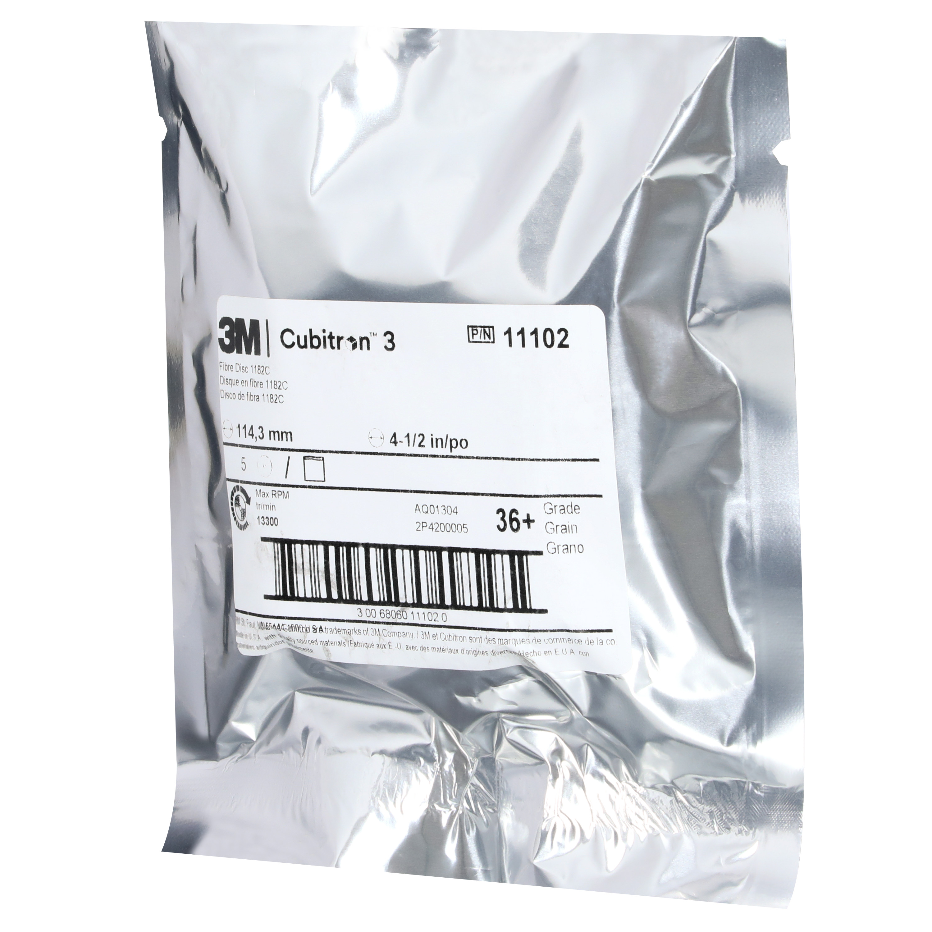 3M™ Cubitron™ 3 Fibre Disc 1182C, 36+, TN Quick Change, 4-1/2 in, Die 450E, 5/Bag, 40 ea/Case