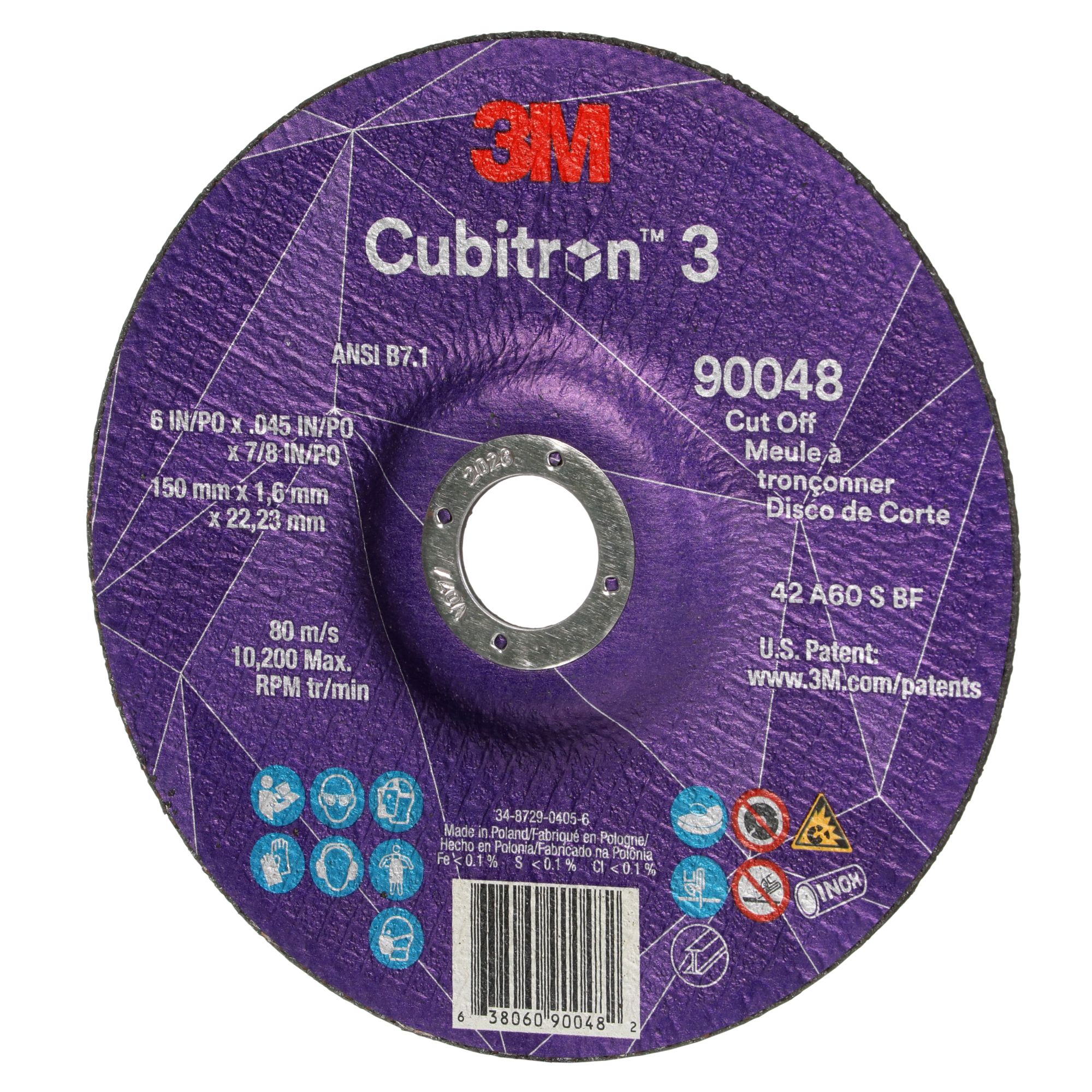 All Products>Abrasives>3M™ Cubitron™ 3 Cut-Off Wheel, 90048, 60+, T27, 6 in x 0.045 in x 7/8 in (150 x 1.6 x 22.23 mm), ANSI, 25/Pack, 50 ea/Case