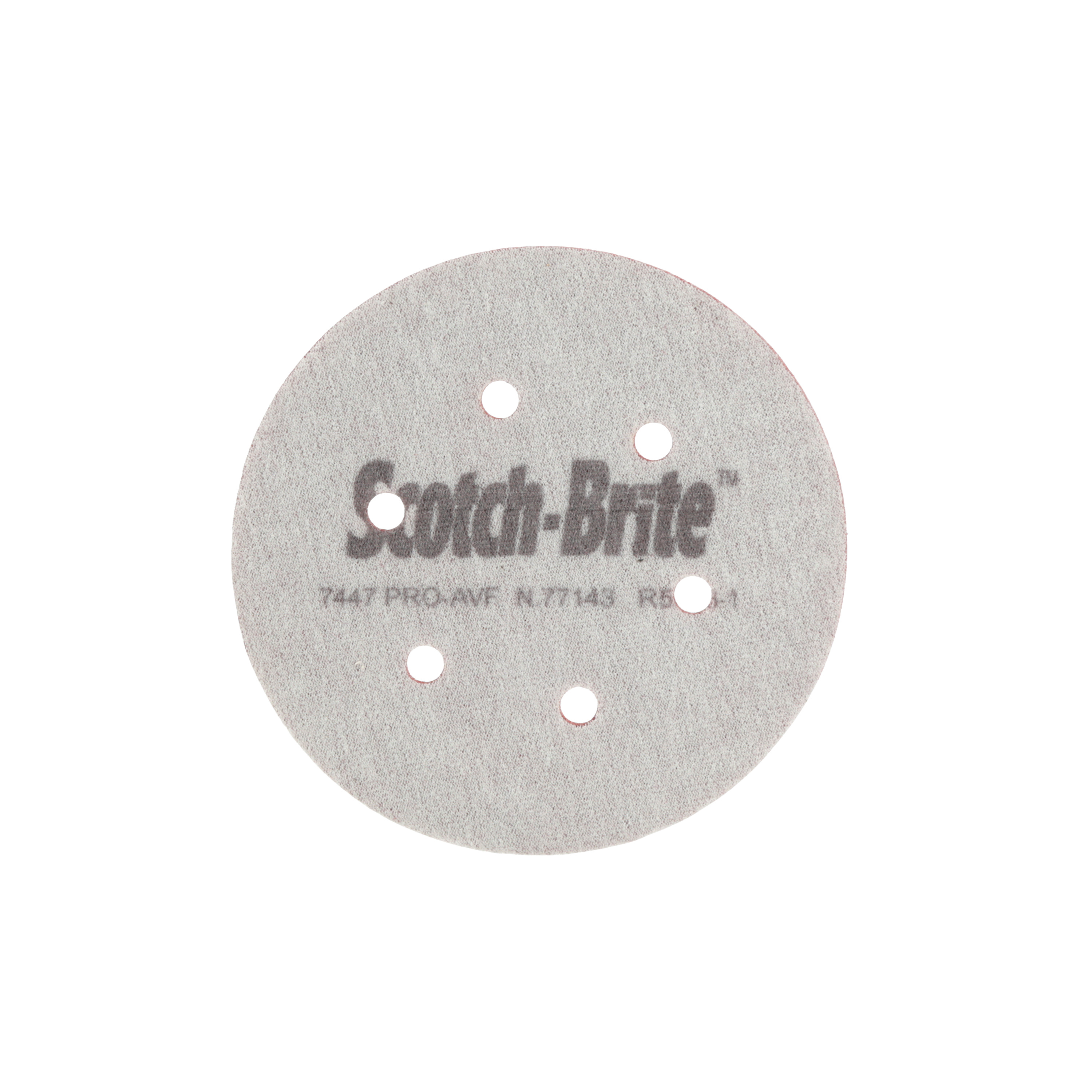 The 7447 PRO Disc is engineered to reduce surface prep time whether prior to paint in the automotive industry or scuff sanding furniture or cabinetry. A fiber coating technology allows the Scotch-Brite™ Hookit™ 7447 PRO Disc to cut faster and produce a more consistent scratch, reducing the time it takes you to scuff, prep or finish parts. The tightly graded abrasive particles provide consistent, uniform results throughout life of the disc. Featuring very fine grade aluminum oxide abrasives, this disc cuts fast, leaving a clean and smoothly finished surface.