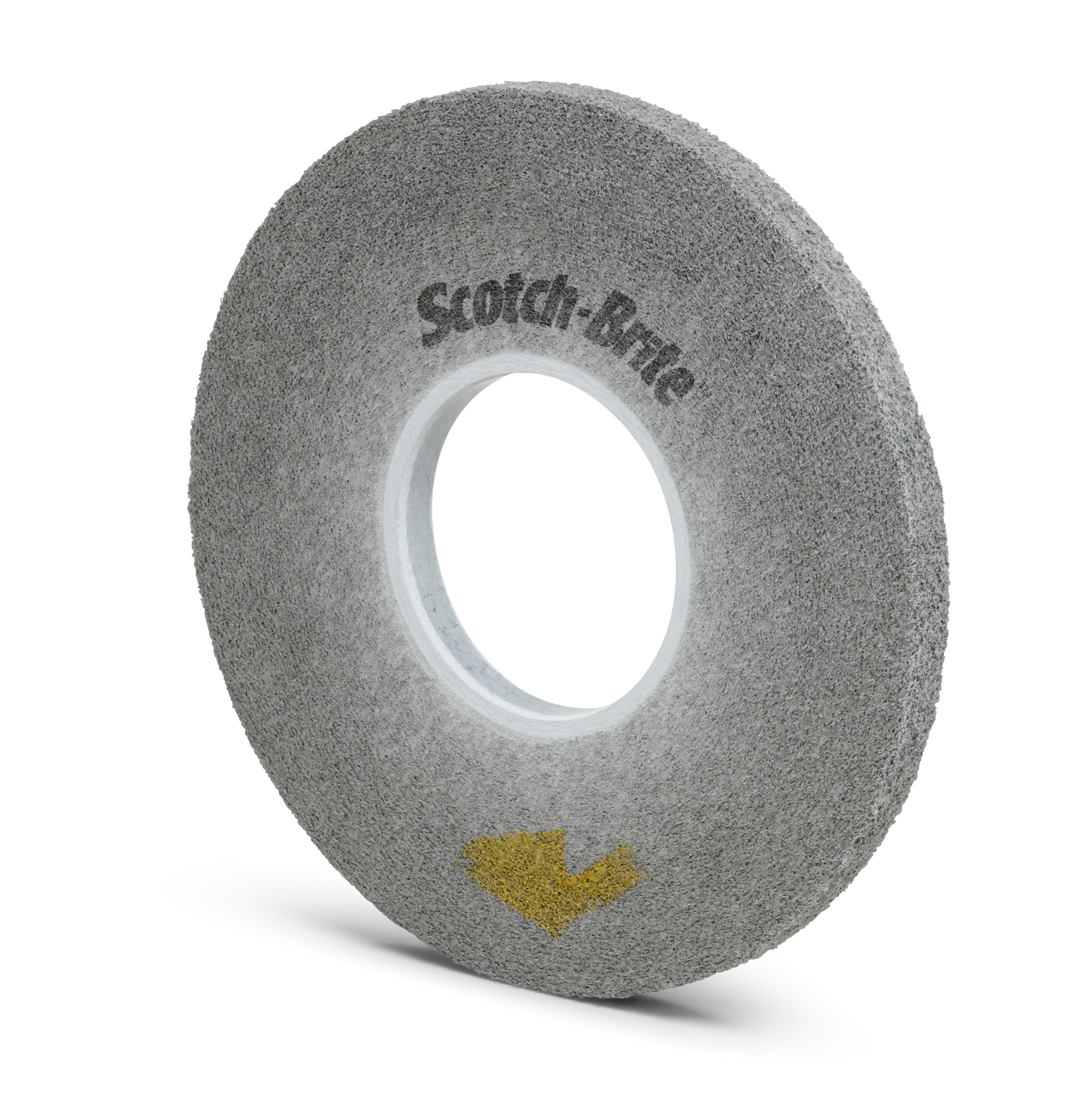 Exceptional Cut and Longevity, with Less Pressure The hard density Scotch-Brite™ EXL PRO Deburring Wheel quickly deburrs stamped or laser cut parts, finishes after belt sanding, and polishes all types of metals, composites and glass. It not only achieves a super fast cut, but leaves a smooth, clean surface without smearing, reducing your need for additional cleanup and preparation. Convolute construction and clean, uniform wear keep the wheel running smoothly and produce a professional finish with less pressure, minimizing fatigue. Scotch-Brite PRO material runs cool and keeps fresh abrasives continuously exposed, making it a superior choice on heat sensitive substrates. The toughness of the wheel extends its service life to keep your productivity higher and costs lower.