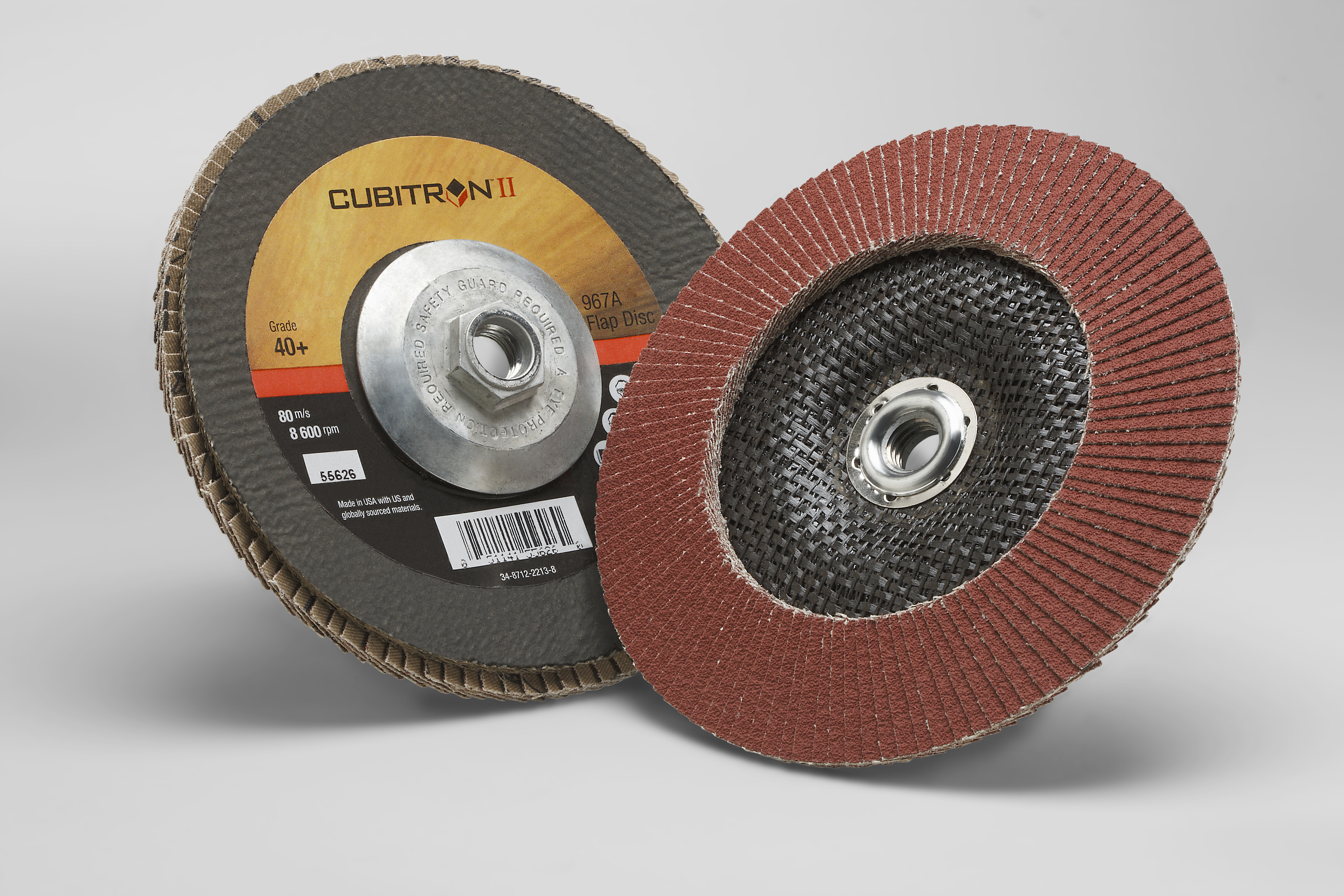 All Products>Abrasives>3M™ Cubitron™ II Flap Disc 967A, 40+, T29 Quick Change, 7 in x 5/8"-11, 5 ea/Case