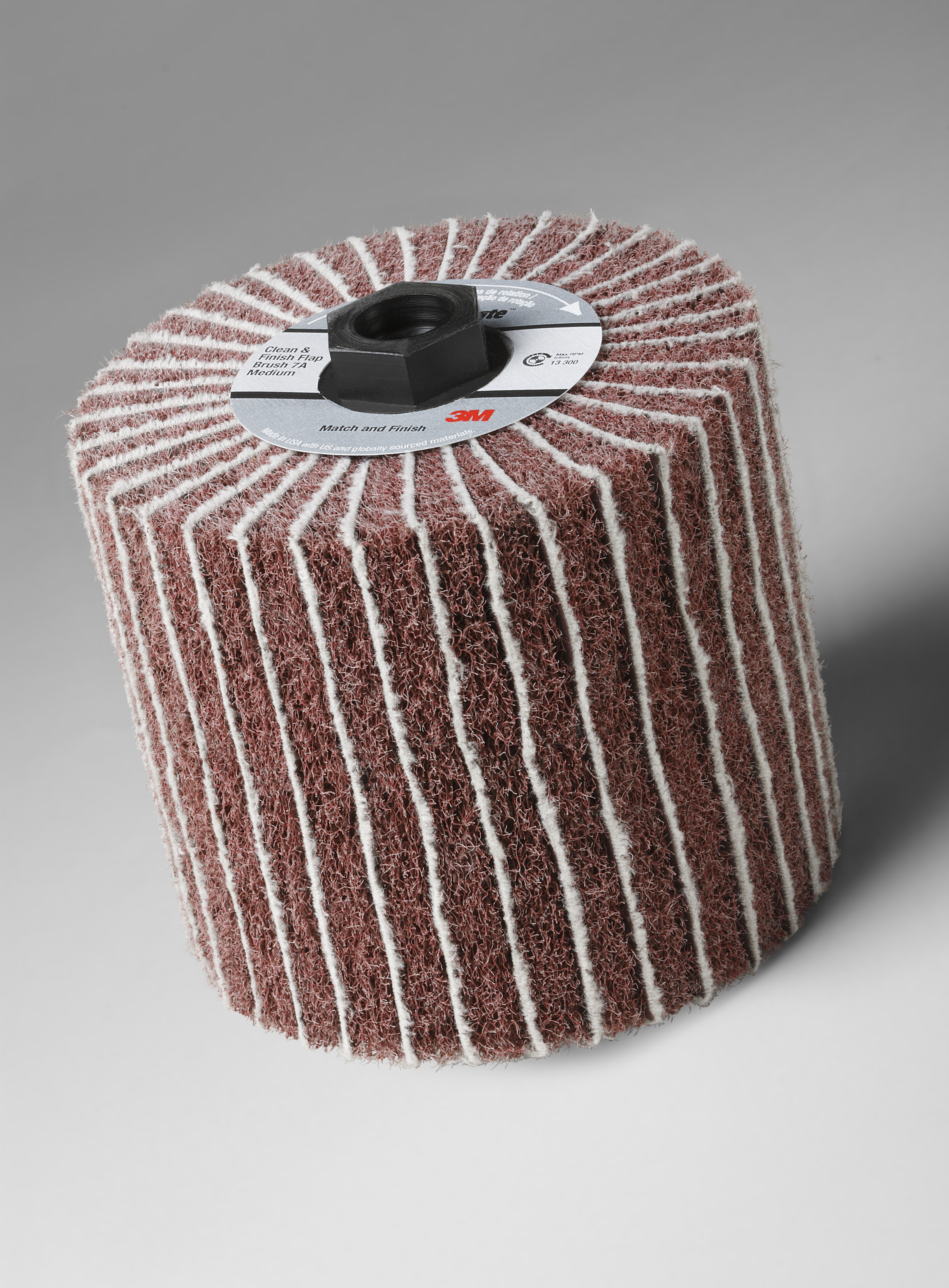 A flap brush may be used with a variety of tools, including backstands, 3M™ Match and Finish Sander, and Inline Sanders.