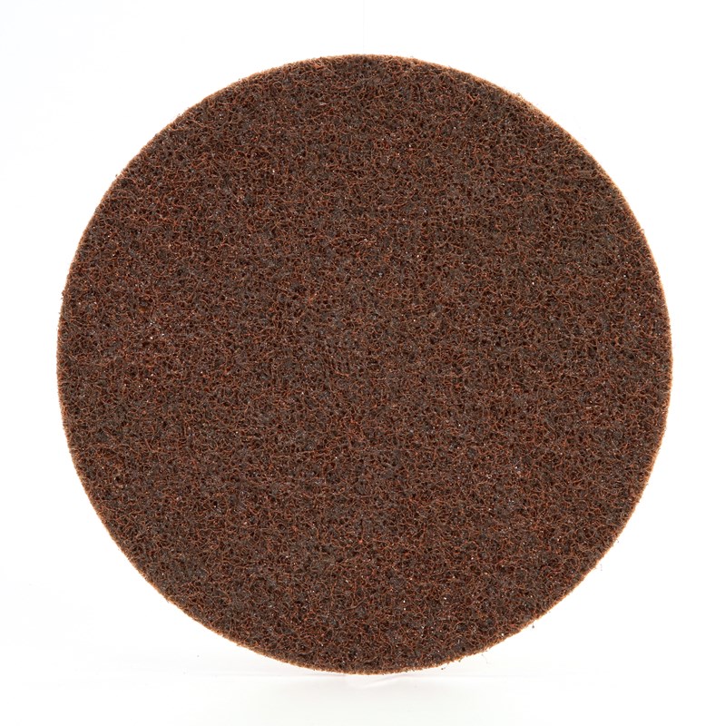 The Scotch-Brite™ Surface Conditioning Disc uses aluminum oxide abrasive. Aluminum oxide is a popular choice among industrial professionals because of its cut-rate and long life. This mineral is a tough, durable abrasive that self-fractures to expose fresh cutting edges in use, whereas traditional abrasives, such as garnet, quickly wear down with use. Due to its high cut-rate, hardness, strength, and low heat retention, aluminum oxide mineral is widely used in grinding applications in addition to sanding and finishing use. Aluminum oxide is suitable on a wide variety of substrates in both woodworking and metalworking, including ferrous alloys.