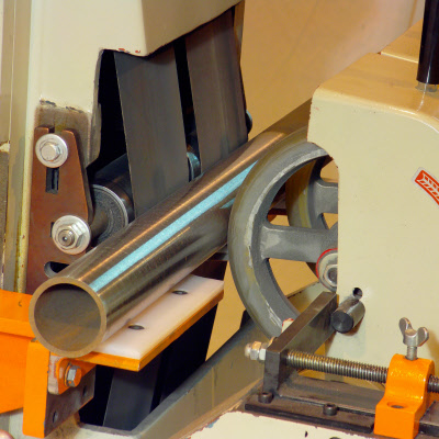 The Dual Belt Centerless Polisher is an expertly engineered piece of equipment, used to finish aluminum, mild steel and stainless steel. It includes a nylon coated, wear-resistant, steel work table beneath the grinding heads and feed mechanism. This centerless polisher runs off a durable 5 HP motor, and spins pipes at 1800 RPM. The Dual-Belt Polisher comes complete and ready to use. Simply order the appropriate abrasive belts and you’ll be ready to polish. Call Waters Industrial with any questions as to which centerless polisher or other piece of metal finishing equipment is best suited to your needs.