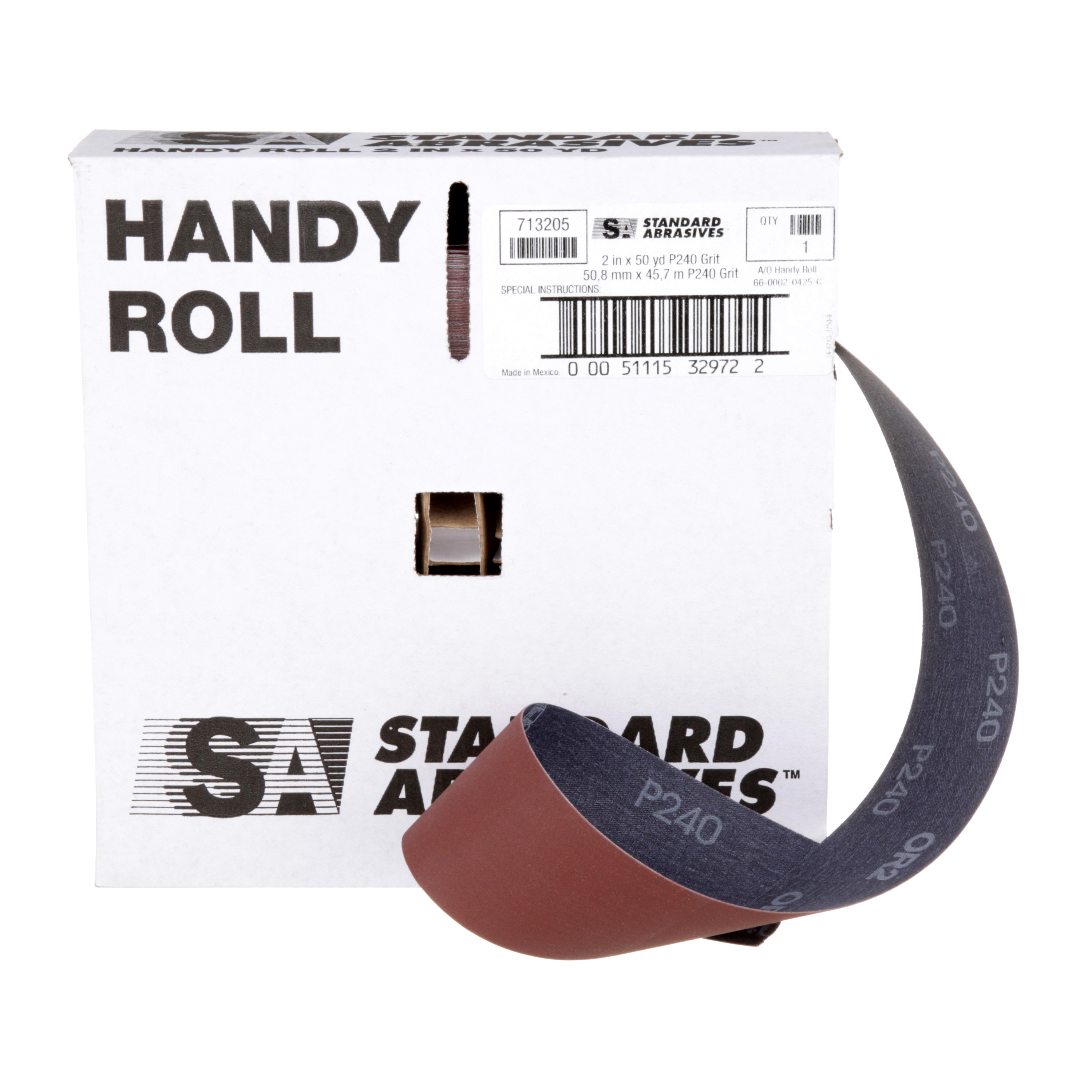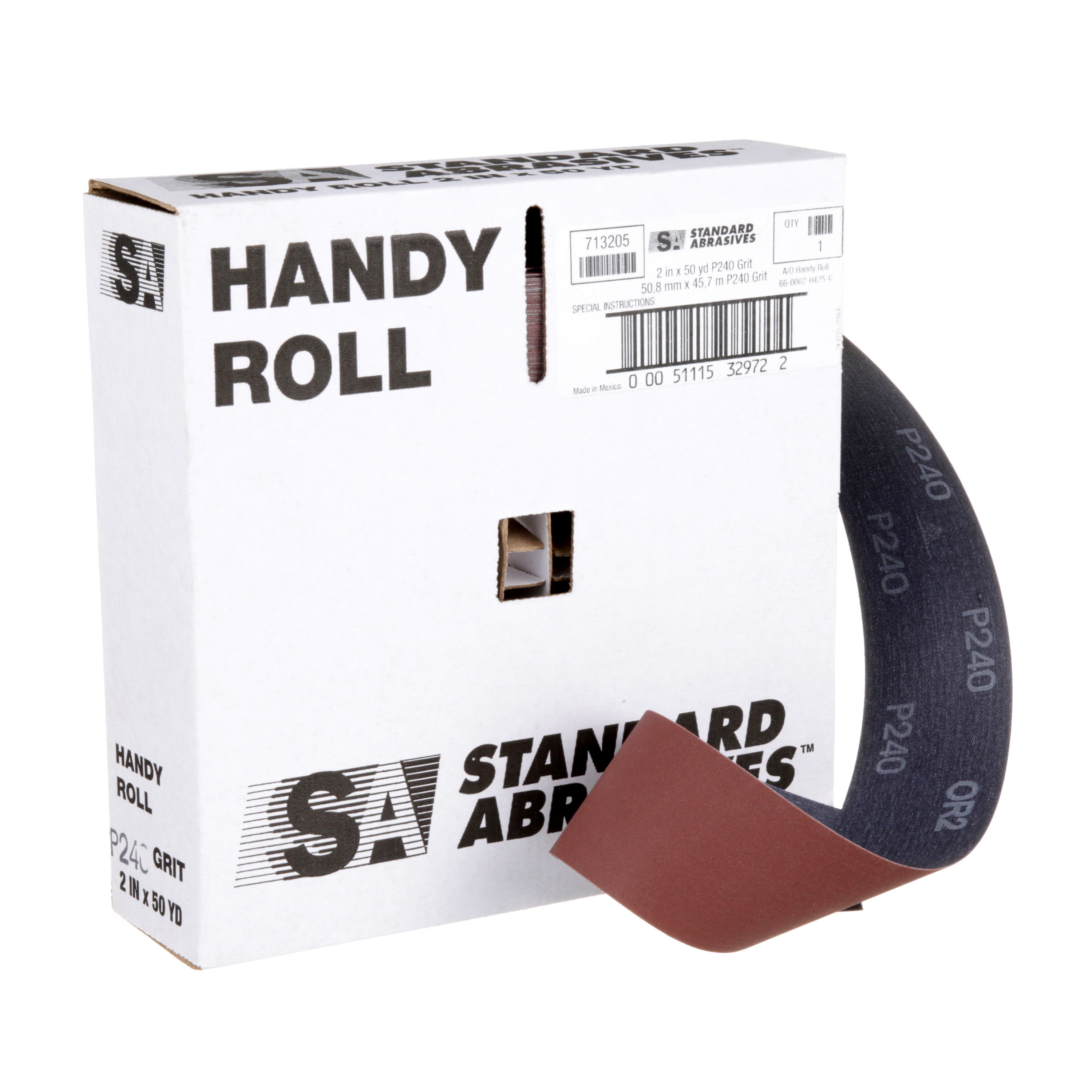 All Products>Abrasives>Standard Abrasives™ Aluminum Oxide Handy Roll, 713205, P240 J-weight, 2 in x 50 yd, 10 ea/Case