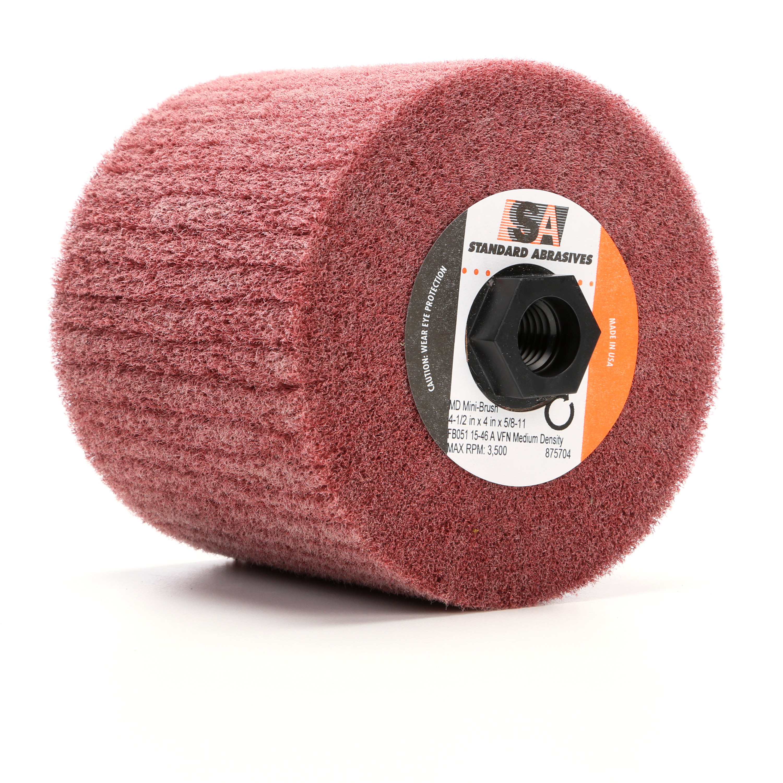All Products>Abrasives>Standard Abrasives™ MD Mini-Brush 875703, 4-1/2 in x 4 in x 5/8-11 FB039 20-71 A MED Medium Density, 1 ea/Case