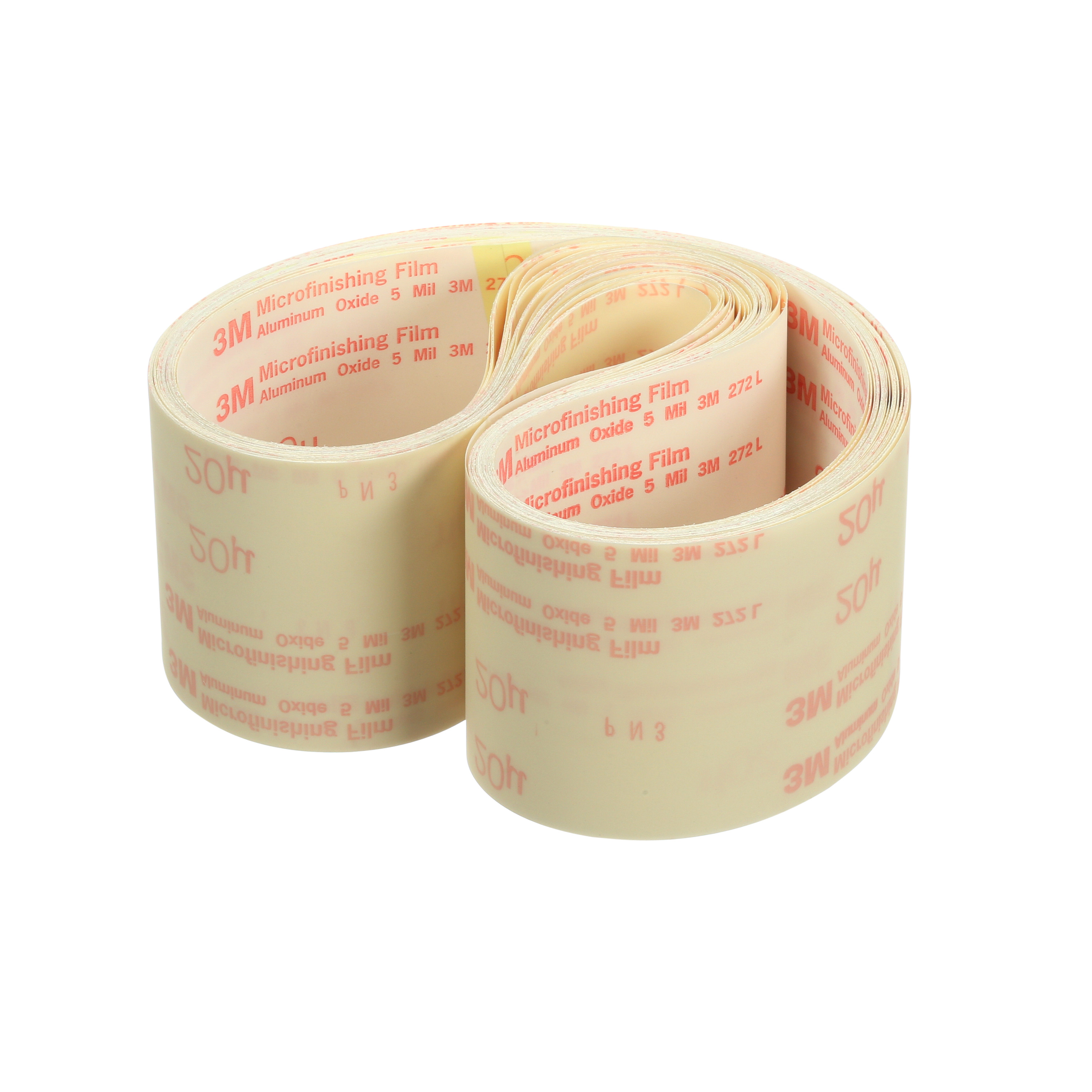 Aluminum Oxide Mineral 3M™ Microfinishing Film Belt 272L is designed by anchoring aluminum oxide mineral to a polyester film backing with resin. This belt is uniquely suited to help with sheet polishing, finishing, and flat finishing.