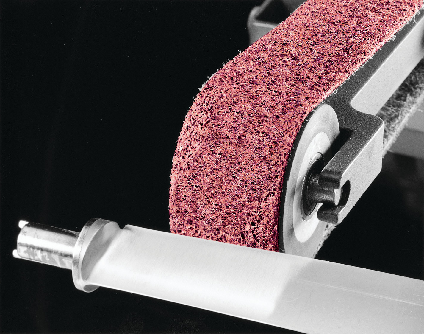 The Scotch-Brite™ Advantage Non-woven technology makes Scotch-Brite™ industrial abrasives unique. A combination of fiber strands, resin, and abrasive mineral forms a thick, open web. The spring-like nature of the fibers responds to contours and effectively removes unwanted burrs, soils and contaminants while maintaining the geometry of the workpiece, which in turn reduces rework and boosts productivity. Gaps in the web allow swarf to escape, so debris does not clog the mineral. Fibers in the web continually break down with use to reveal fresh mineral for exceptional consistency, superior cut performance and extremely long service life. Scotch-Brite products may enhance productivity while reducing the need for cleaning chemicals and wire brushes. From aesthetic finishing to weld blending, deburring and more, Scotch-Brite abrasives work fast and deliver consistent results, part after part.