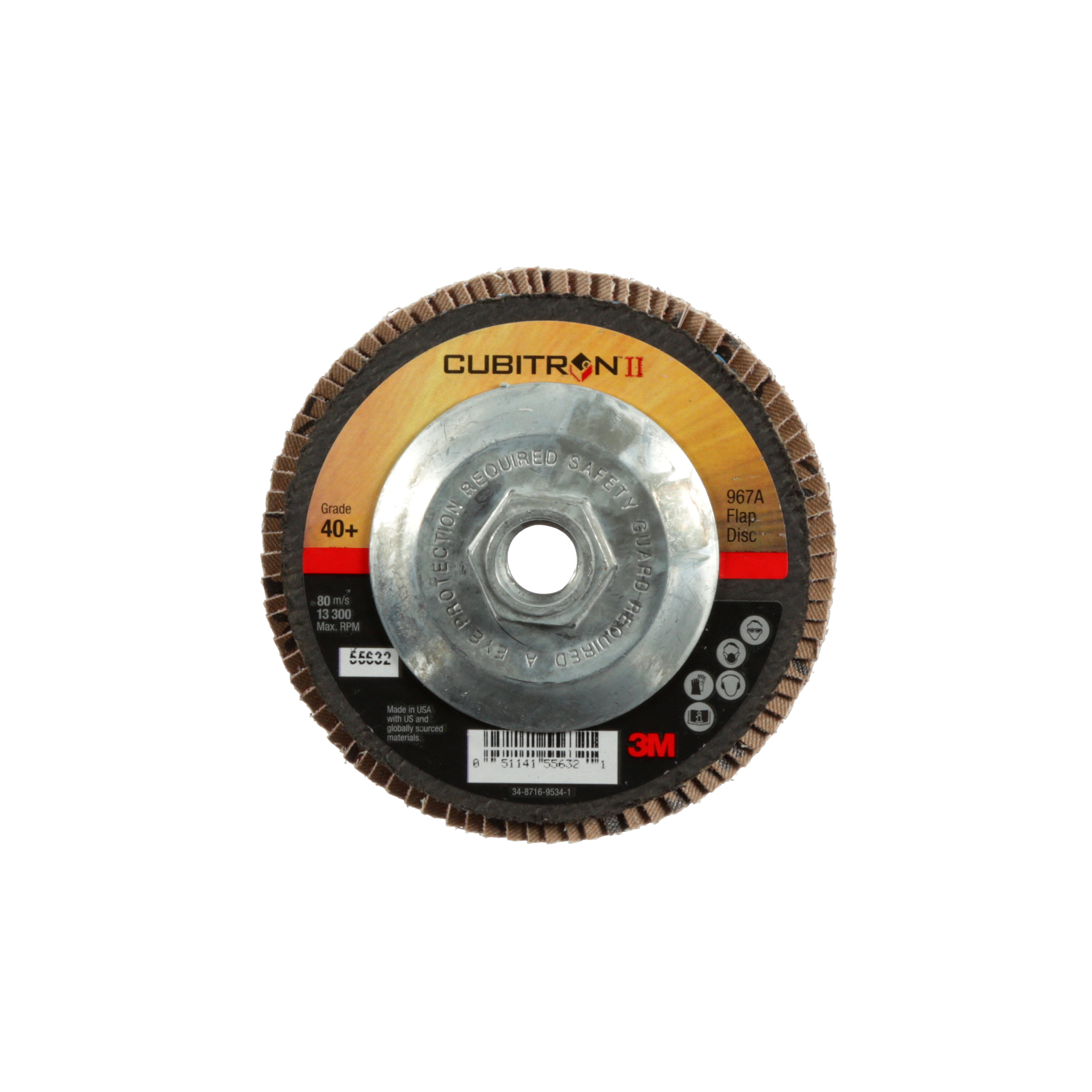 3M™ Cubitron™ II Flap Disc 967A, 40+, T27 Quick Change, 4-1/2 in x 5/8"-11, Giant, 10 ea/Case
