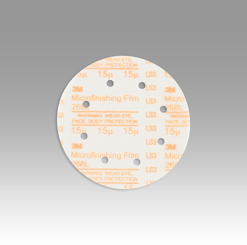 3M™ Hookit™ Microfinishing Film Disc 268L, 15 Mic 3MIL, Type D, 6 in x NH, D/F 8HL, Die 600HY, 25/Bag, 500 ea/Case