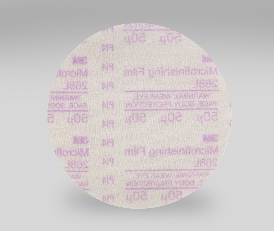 3M included pressure sensitive adhesive (PSA) in the 3M™ Microfinishing PSA Film Disc 268L for easy attachment to abrasive tools. The PSA backing holds the disc securely in place during use, and removes cleanly from the backup pad (sold separately), leaving an uncontaminated surface for the next sheet or disc. Designed for use with orbital and random orbital sanders, this disc comes in a range of micron grades for complete multi-step sanding and finishing. The polyester backing on 3M™ Microfinishing PSA Film Disc 268L is water resistant, so the disc may be run wet if desired. Adding a lubricant like water can help minimize build up and wash away unwanted swarf. The benefits are threefold: preventing clogging, keeping the mineral sharp and helping the abrasive run cool.