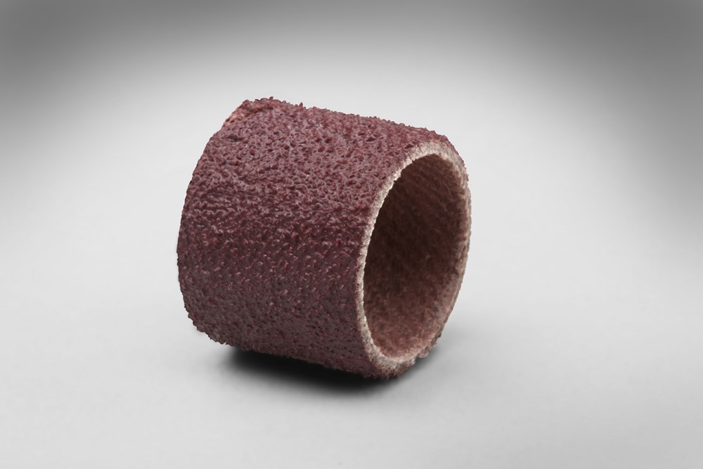 This product can also be used for shaping and smoothing wood and fiberglass. The 3M™ Abrasive Cloth Band 341D fits onto a rubber wheel attachment (such as a cushion polishing wheel or a rubber slotted expander wheel, both sold separately) for use with a die grinder or rotary drill. It is constructed with aluminum oxide mineral, a popular choice among industrial professionals because of its fast cut-rate, durability, and long life. It can be used on a wide variety of materials in both woodworking and metalworking, including ferrous alloys, and is the most commonly used industrial abrasive. The abrasive particles are adhered to the cloth backing with resin, creating a strong bond that withstands high heat and pressure. The bands come in a range of widths and lengths to suit different contours and tasks, and are often used in foundry work.