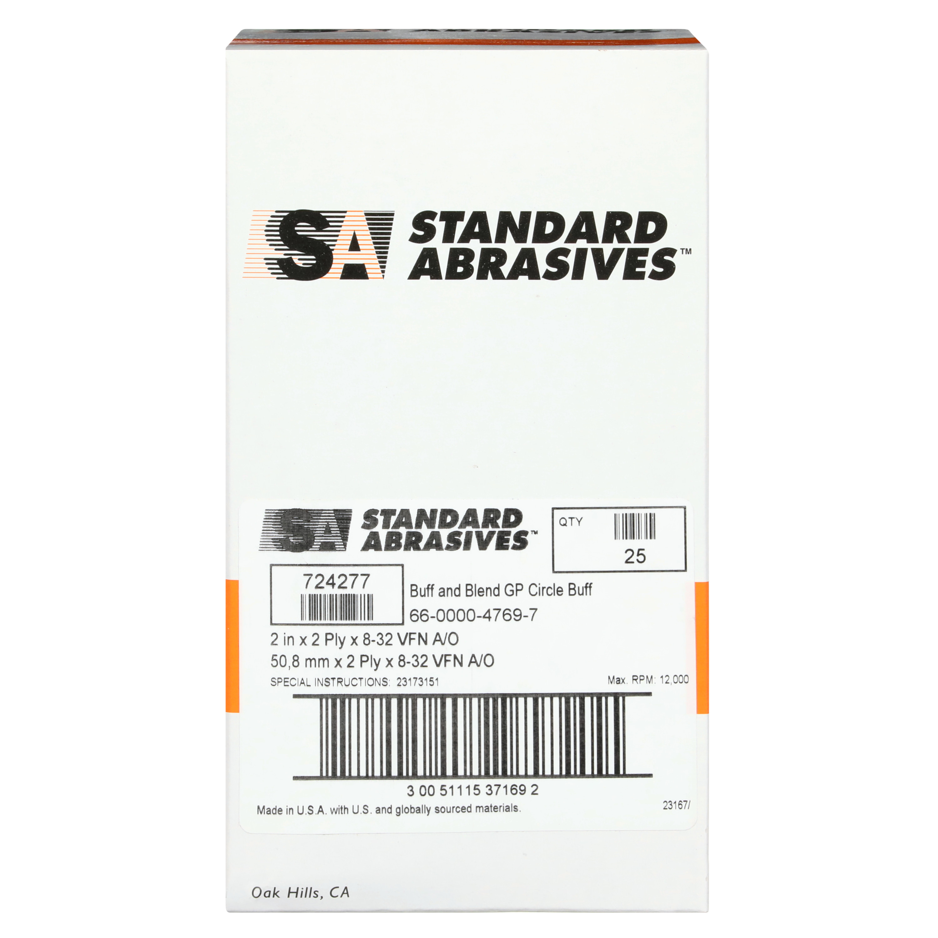 Standard Abrasives™ Buff and Blend Circle Buff GP 724277, A/O Very Fine, 2 in x 2 Ply x 8-32, 25/Carton, 250 ea/Case