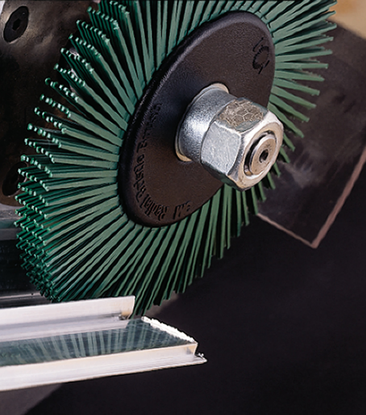 Applications Bristle brush discs feature firm yet flexible bristles that produce uniform finishes around protrusions, detail grooves, patterns and other hard-to-reach areas. They conveniently remove paint, stains, adhesives, weld burns, rust, heavy oxides, and surface contaminants. The discs work well on aluminum, brass, bronze, carbon steel, cast iron, stainless steel, and other metals. Applications include general industrial, aerospace, automotive, metalworking and transportation as well as fine detailing requirements of electronics, jewelry and woodworking industries.