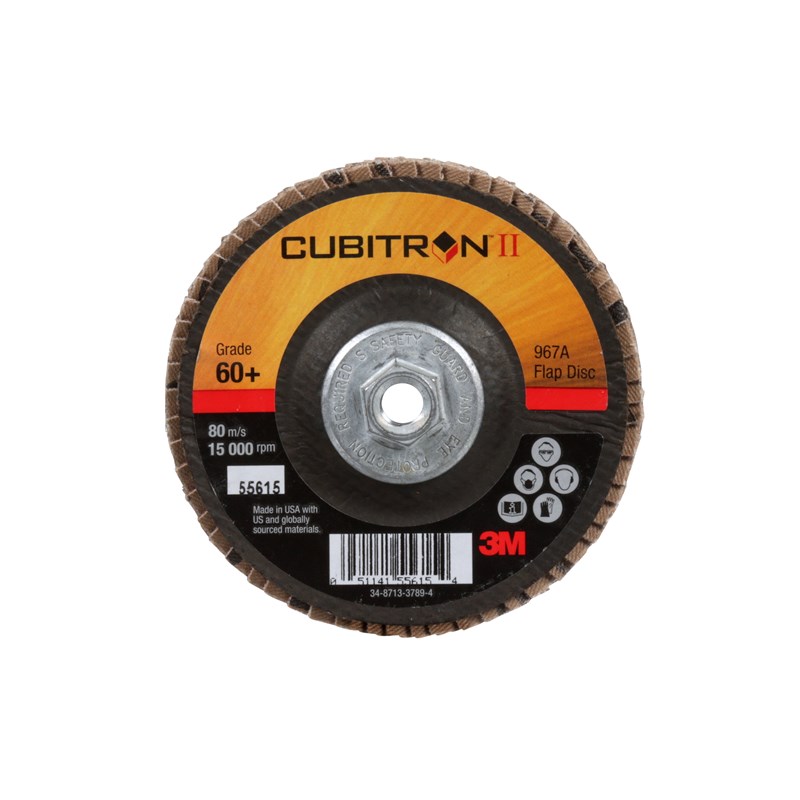All Products>Abrasives>3M™ Cubitron™ II Flap Disc 967A, 60+, T29 Quick Change, 4 in x 3/8"-24, 10 ea/Case