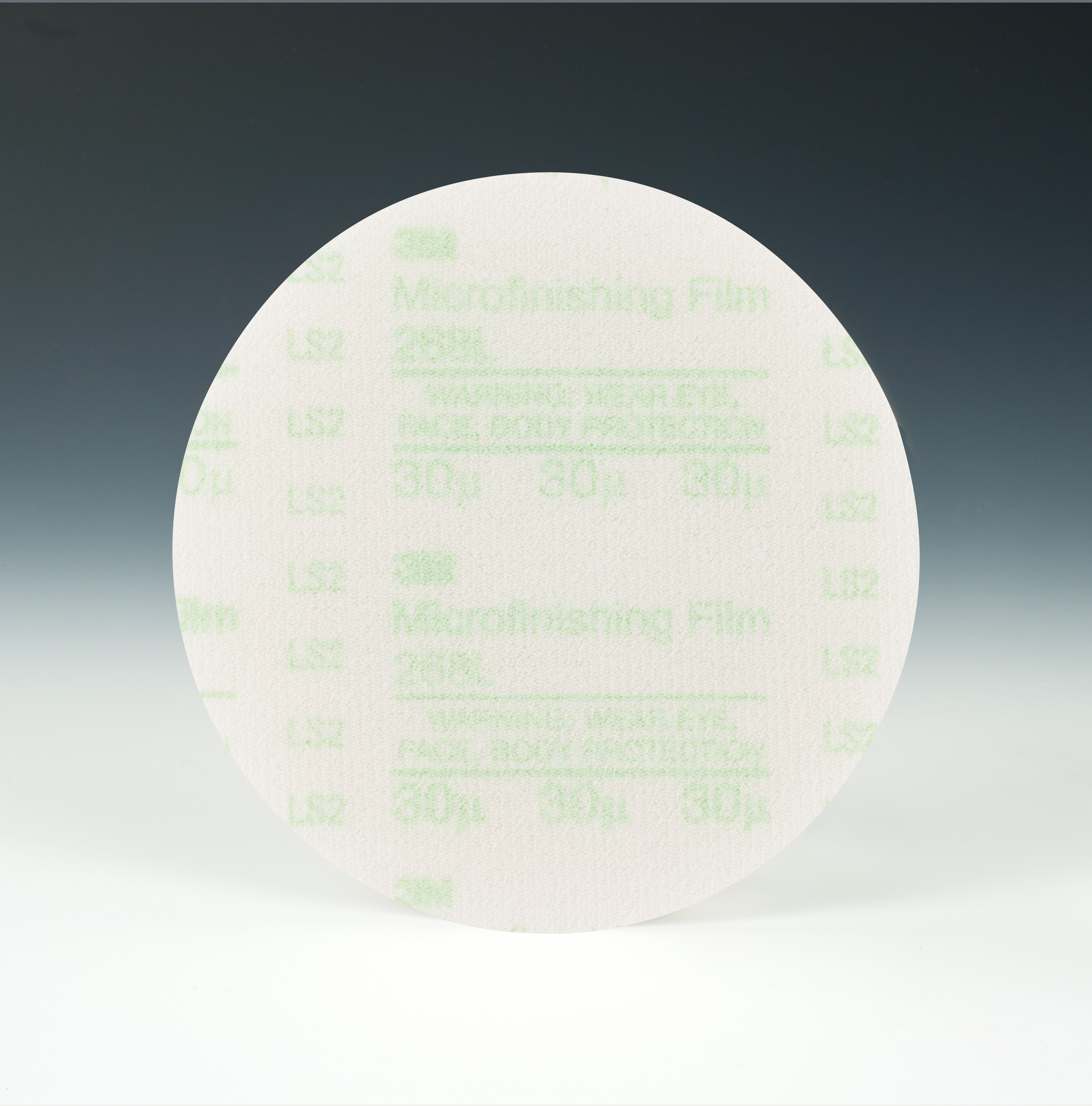 3M™ Hookit™ Microfinishing Film Disc 268L is designed to enable operators to achieve precise, controlled, close-tolerance finishes on surfaces from metals to plastics to wood. This product features precision, micron-graded aluminum oxide, resin-bonded to a high-strength, resilient polyester film backing. Aluminum oxide is desirable among industrial professionals for its fast cut-rate and long life.