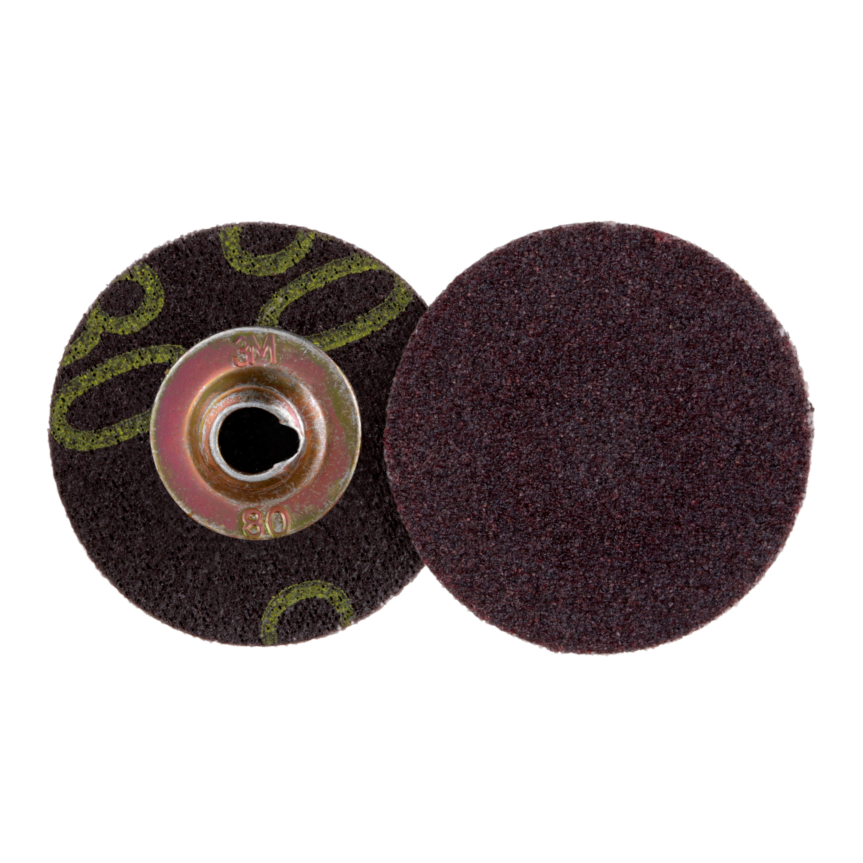 3M™ Roloc™ Disc 361F features an aluminum oxide abrasive, which is a popular choice among industrial professionals because of its fast cut-rate and long life. This mineral makes a tough, durable abrasive that self-fractures to expose fresh cutting edges, whereas traditional natural abrasives dull more quickly. Due to its fast cut-rate, hardness, and strength, it is widely used in grinding applications in addition to sanding and finishing applications. Aluminum oxide is suitable for a wide variety of materials in both woodworking and metalworking, including ferrous alloys.