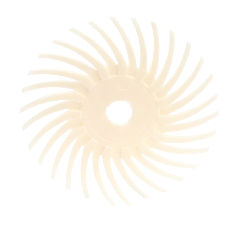 When used at recommended operating speeds, Scotch-Brite™ SR Radial Bristle Disc removes thin layers of sealants, silicones, RTVs and adhesives from most surfaces without removing the underlying paint or coating. Bristle products have no hard edges the way other wheel products do, so they can be compressed to fit into curves and hollows without inducing damaging gouges and trails on the work piece.