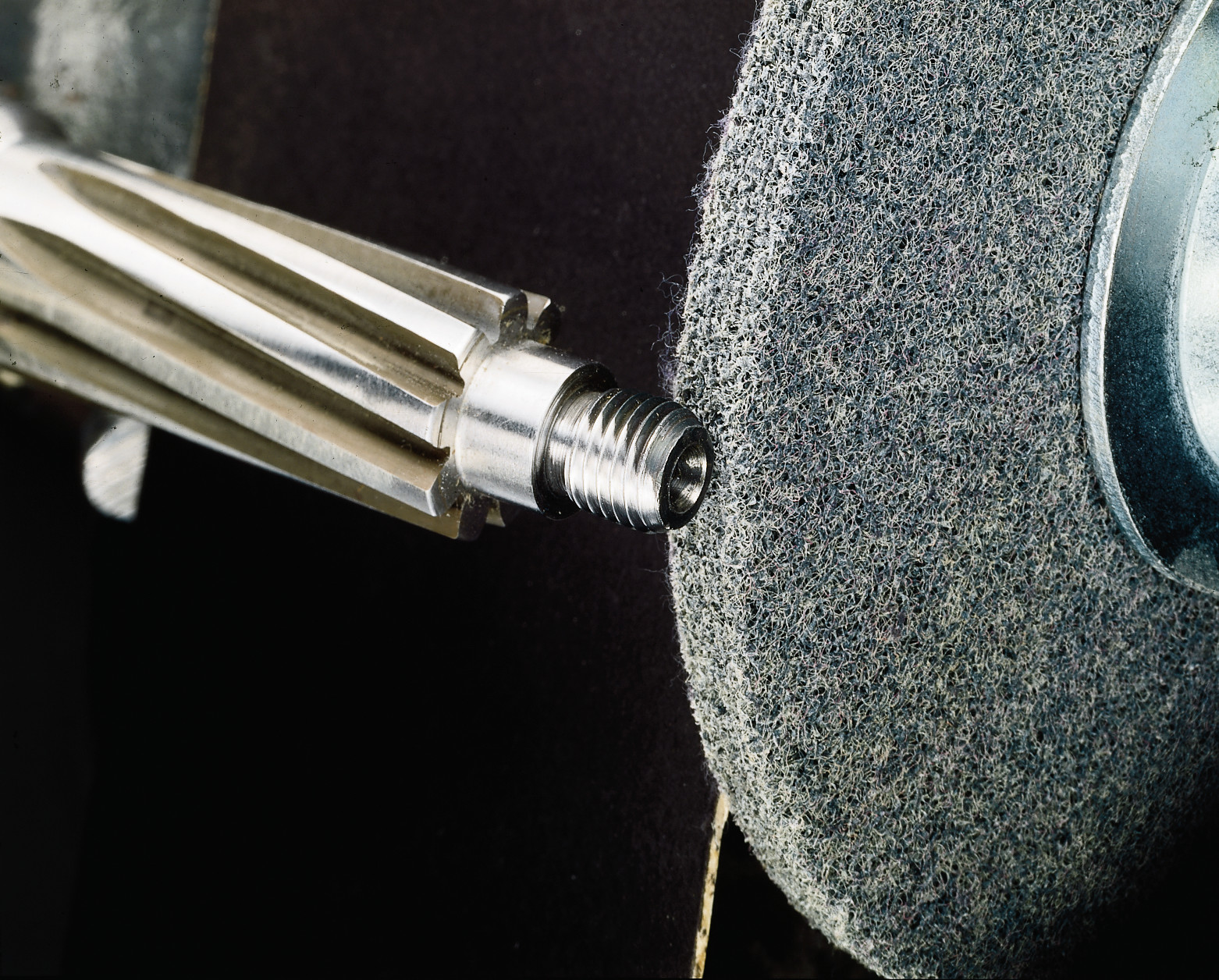 Recommended Applications Standard Abrasives™ Deburring Wheel is a convolute wheel designed to remove medium and heavy burrs on a variety of substrates. Consider aluminum die cast flashing and various molds, which are often cast with close tolerances. The deburring wheel is hard and dense, so it can swiftly remove tiny, stubborn burrs on these precisely-shaped parts and stand up to edges. Yet, because the wheel has open web, it is flexible enough to respond to surface irregularities and still maintain part geometry. Now, removing medium to heavy burrs and parting lines from castings and forgings, and smoothing radii on stamped/formed metal parts becomes swift and efficient. The deburring wheel works tough without sacrificing the care and precision that is required for these applications.