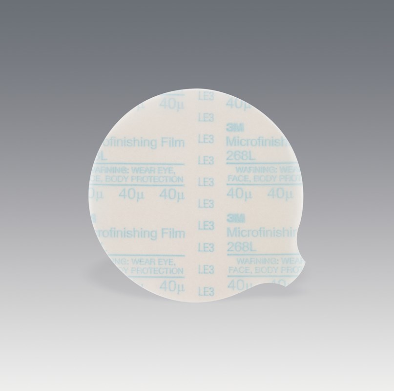 The 3M™ Microfinishing PSA Film Disc 268L is a resin-bonded disc that has great flexibility and won't sacrifice durability and reliable performance. To complement the effective cut of the aluminum oxide mineral, the polyester film backing flexes to help achieve a consistent finish over contours and offers greater tear-resistance than comparable paper products, making it ideal for high-production environments.