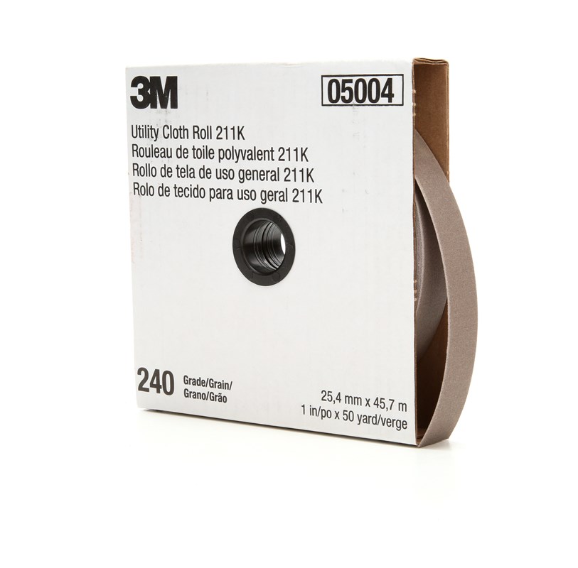 All Products>Abrasives>3M™ Utility Cloth Roll 211K, 240 J-weight, 1 in x 50 yd, Full-flex, 5 ea/Case