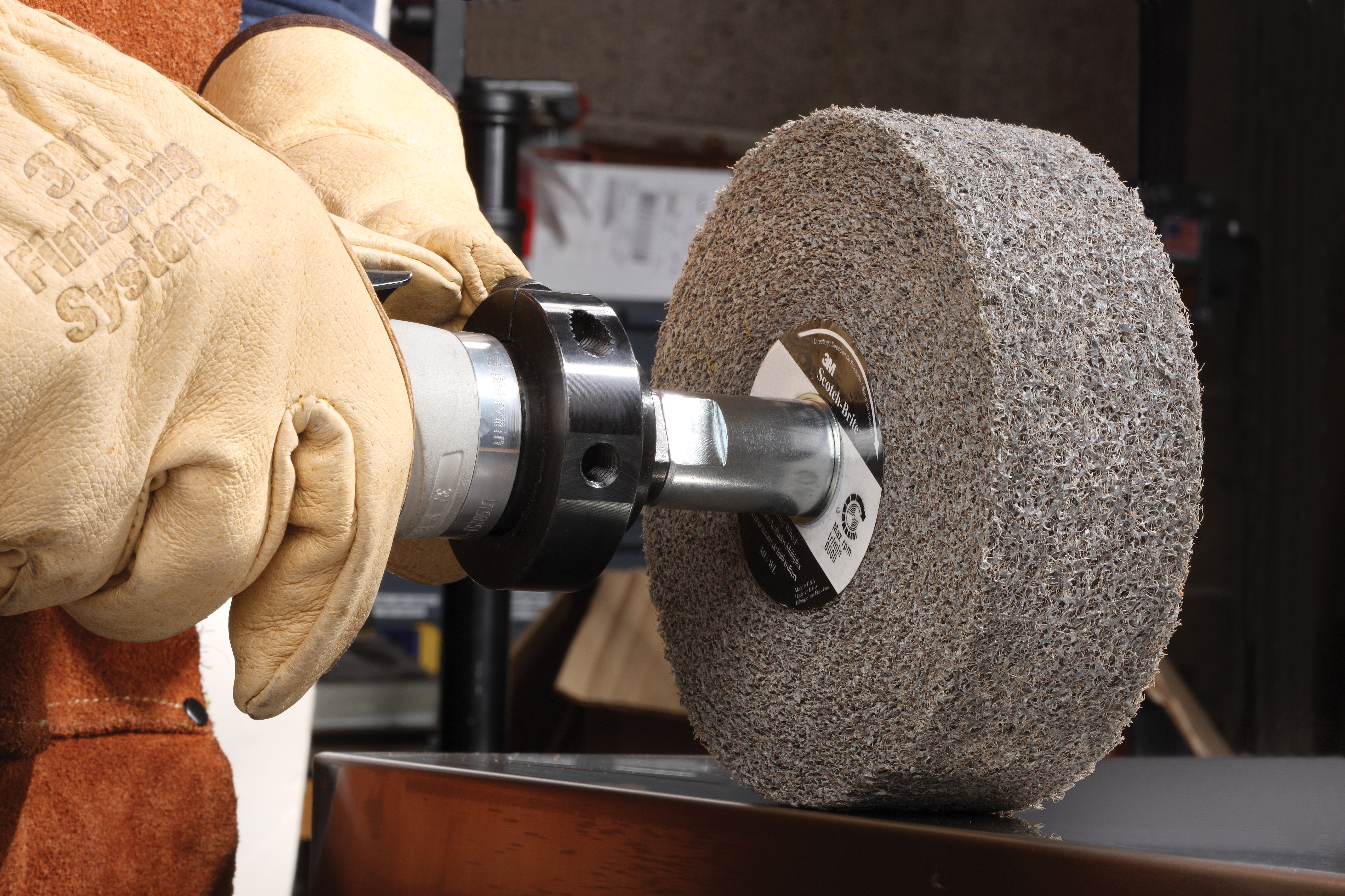 Scotch-Brite™ industrial abrasives are unique surface conditioning products with abrasives incorporated into non-woven nylon or synthetic fibers. Combining abrasives with the fibers creates an abrasive system that delivers consistent results for the life of the product. It uses a material that runs cool and is load resistant, which keeps the abrasive minerals cutting at high performance by limiting clogging of the fibers.