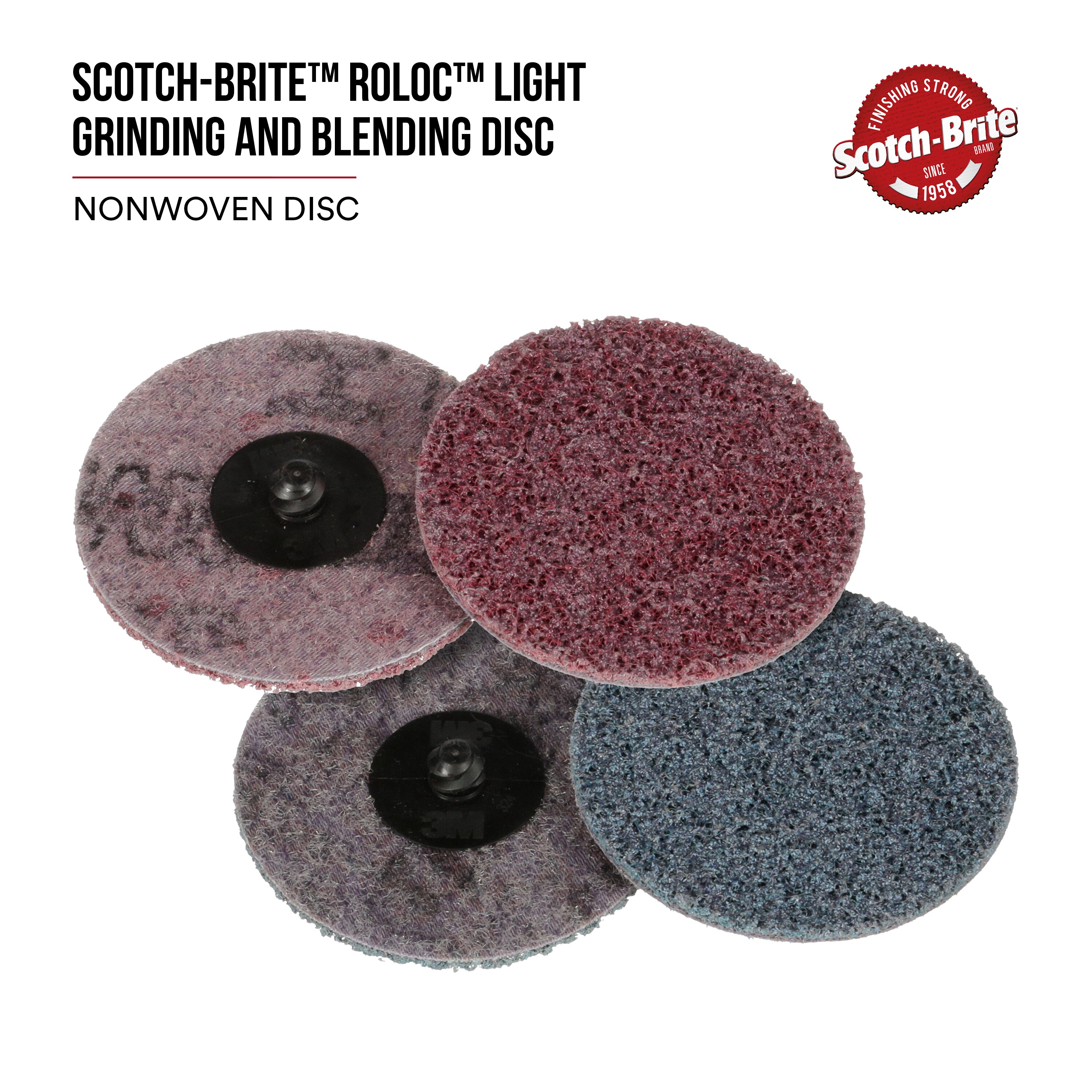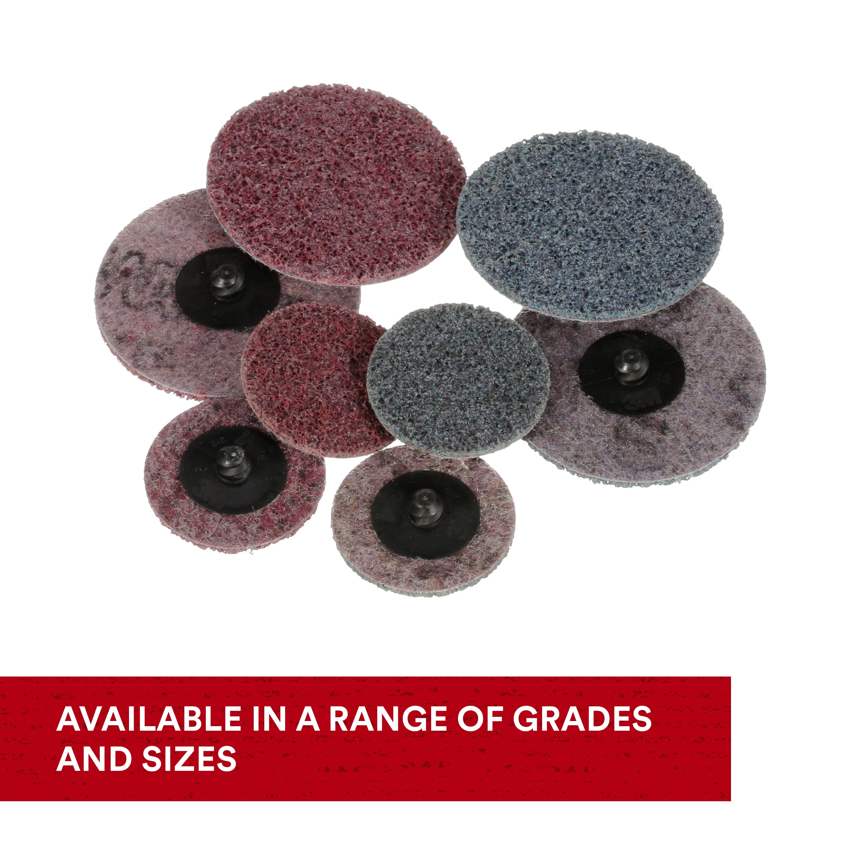 3M™ Roloc™ quick change discs are smaller discs that easily and quickly attach onto a Roloc™ disc pad (sold separately) so that you can conveniently change discs fast and easily to accommodate different tasks or multi-step finishing processes. The Roloc™ system provides a secure attachment even for heavy-duty applications, and the variety of available 3M™ Roloc™ discs allows swapping from one application to the next in seconds. Each disc is also color-coded to identify its grade, making it easy to grab the grade required for different applications.