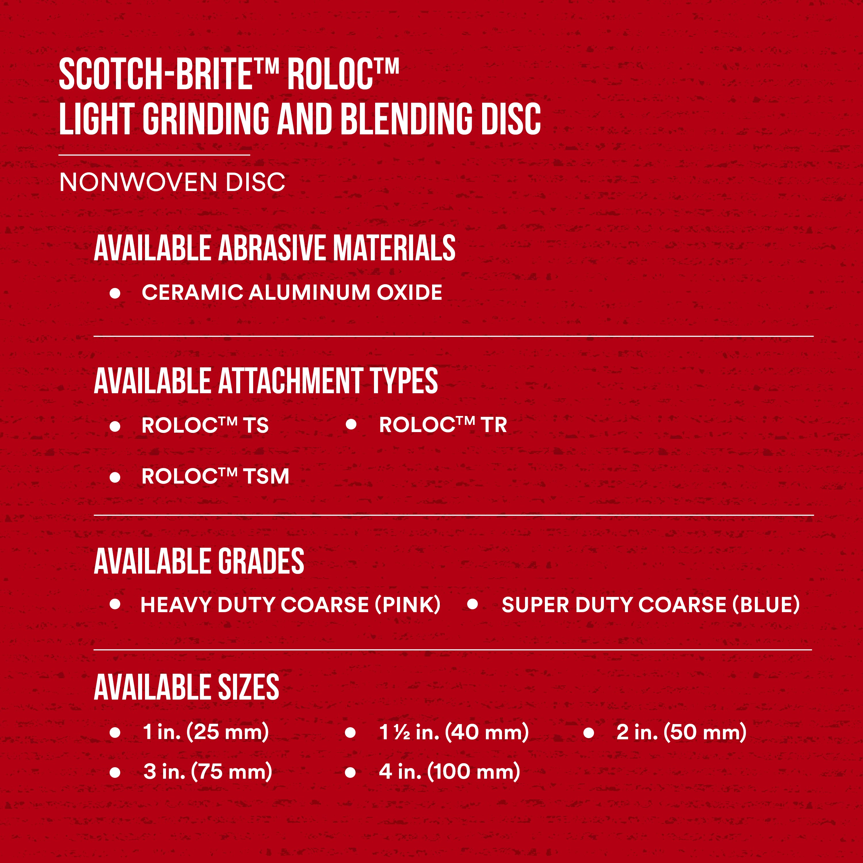 Scotch-Brite™ Roloc™ Light Grinding and Blending Disc, GB-DR, Super Duty A Coarse, TR, 4 in, 25/Carton, 100 ea/Case