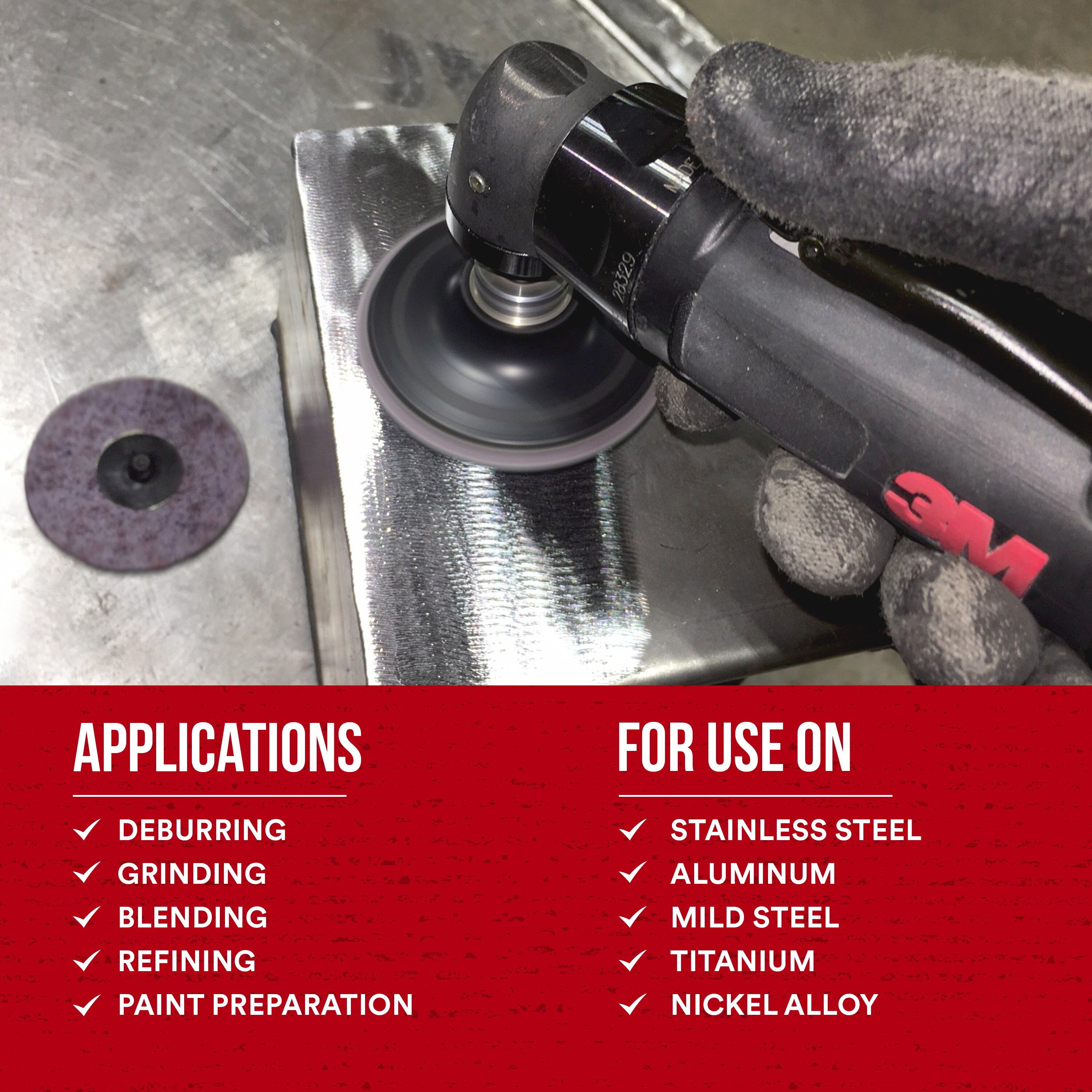 FAST DISC REPLACEMENT: 3M™ Roloc™ attachment system provides quick and secure disc change out