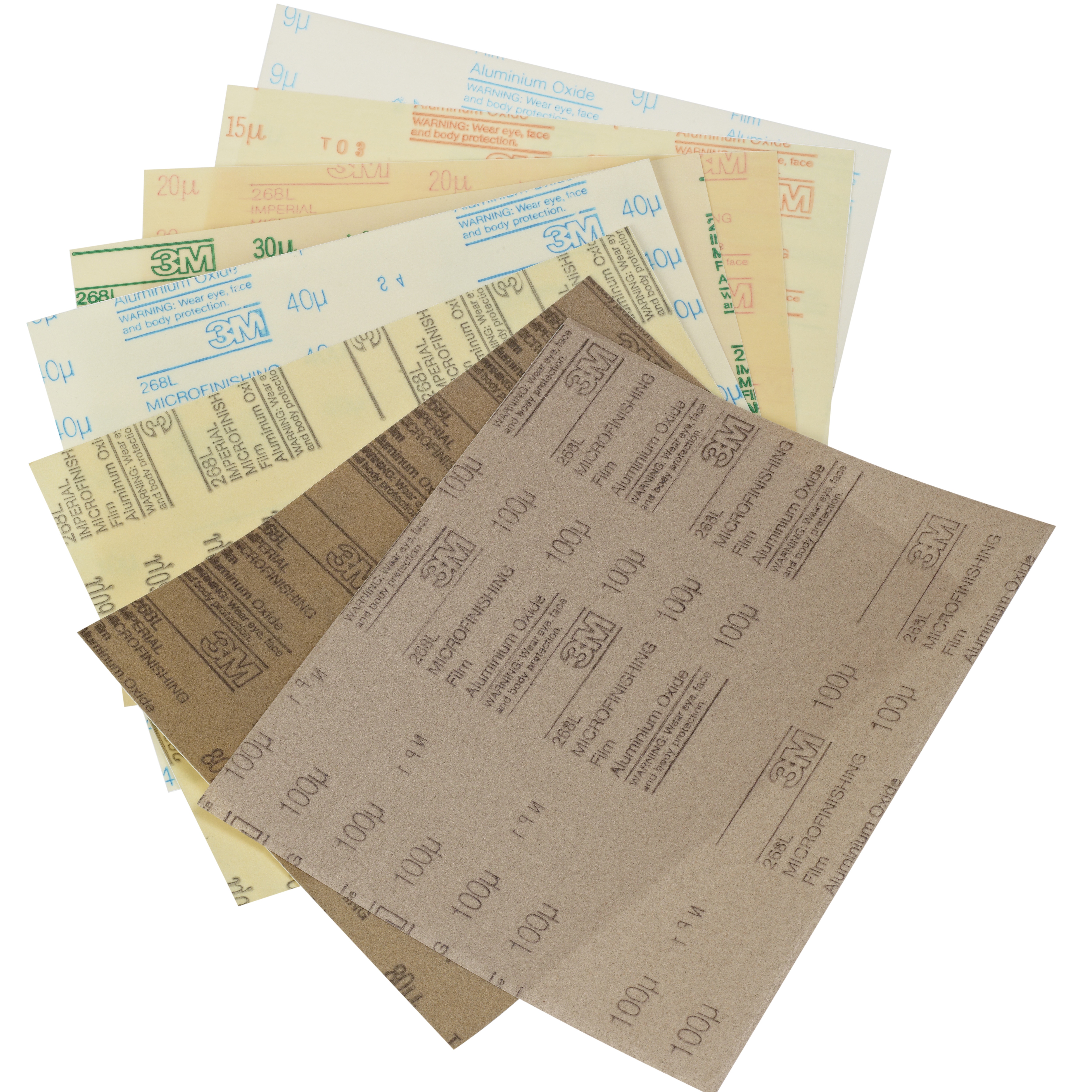 Achieve Close-Tolerance Finishes 3M™ Microfinishing PSA Film Sheet 268L features precision, micron-graded aluminum oxide, resin-bonded to a high-strength, resilient polyester film backing to produce a fast cut-rate and precise, uniform finish on wood, solid surface composites, plastic, fiberglass, metals and paint preparation. The film backing offers great flexibility without sacrificing the durability and reliable performance of the sheet. To complement the effective abrasive action, the polyester film backing flexes to help achieve a consistent finish over contours and offers greater tear-resistance than comparable paper products, making it ideal for high-production environments.