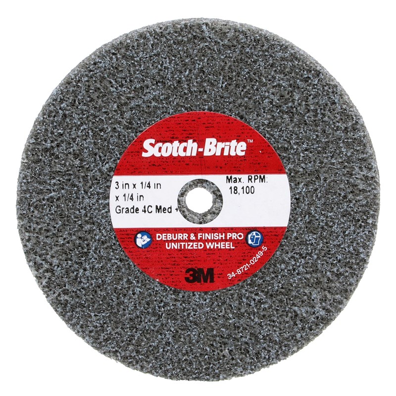 Scotch-Brite™ Deburr & Finish Pro Unitized Wheel, DP-UW, 4C Medium+, 3 in x 1/4 in x 1/4 in, 40 ea/Case