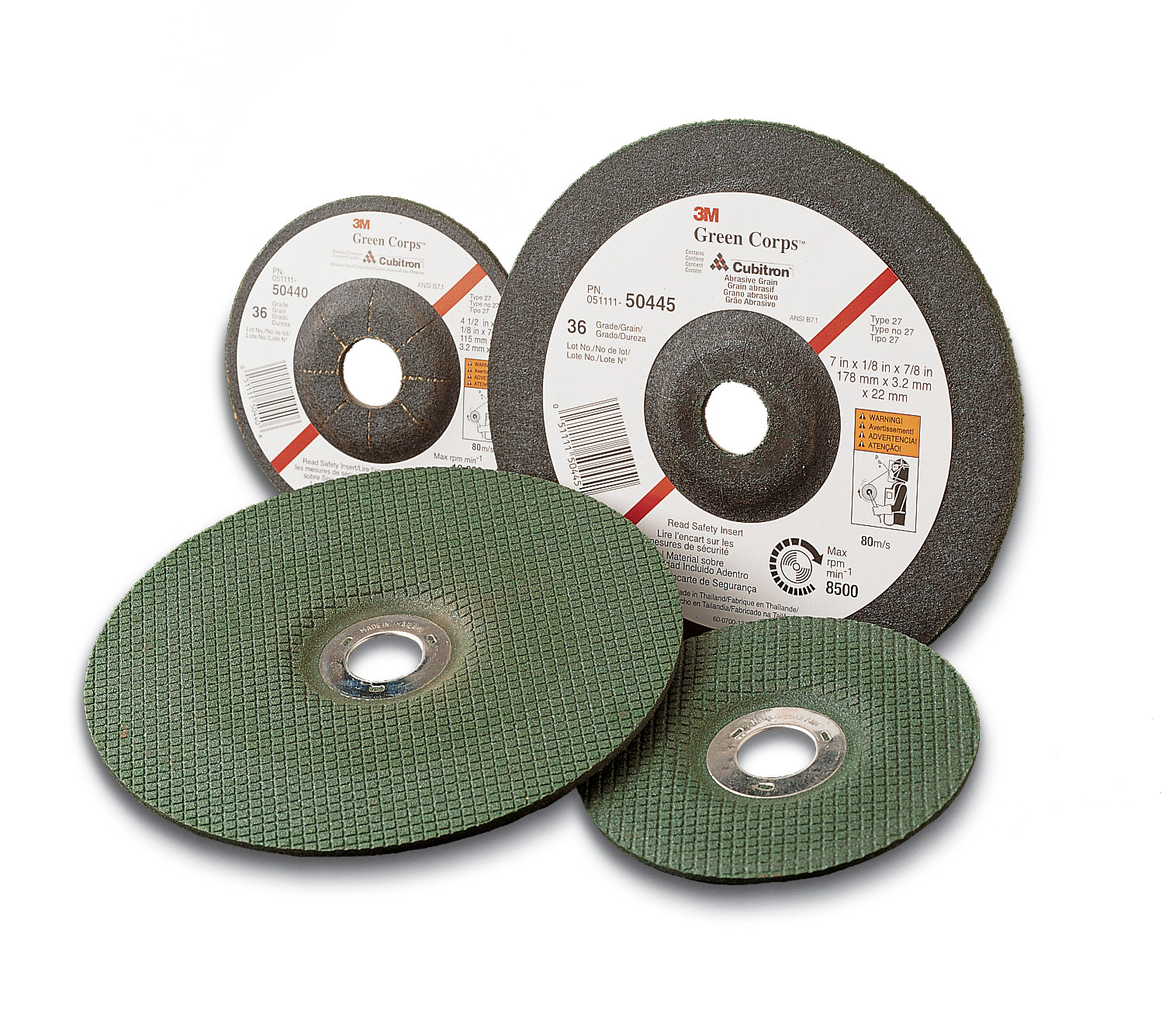 Get up and Grind 3M™ Green Corps™ Type 27 Depressed Center Wheel is a heavy-duty wheel designed to perform at the beginning of a project; as a grinding wheel, it's often the first step in a sequence. Use this wheel for rough grinding applications like beveling, slag removal, weld grinding and edge work on a variety of metals.